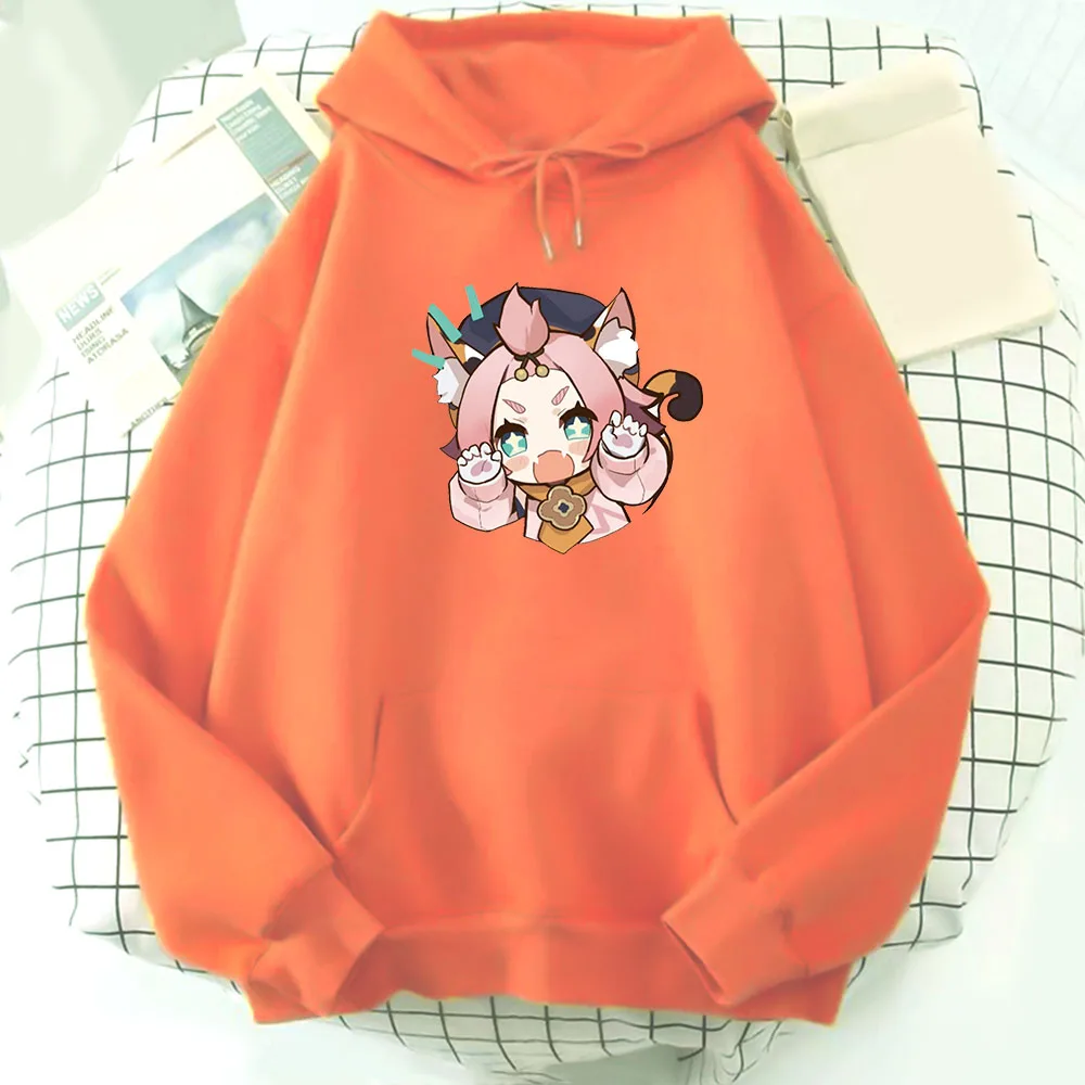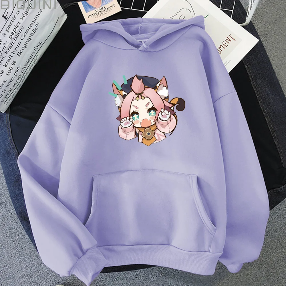 Толстовка с капюшоном в стиле аниме Genshin Impact, популярная игра Diona, милый Принт, новинка 2021, зимняя одежда, Женская Толстовка большого размера, милые Мультяшные карманы