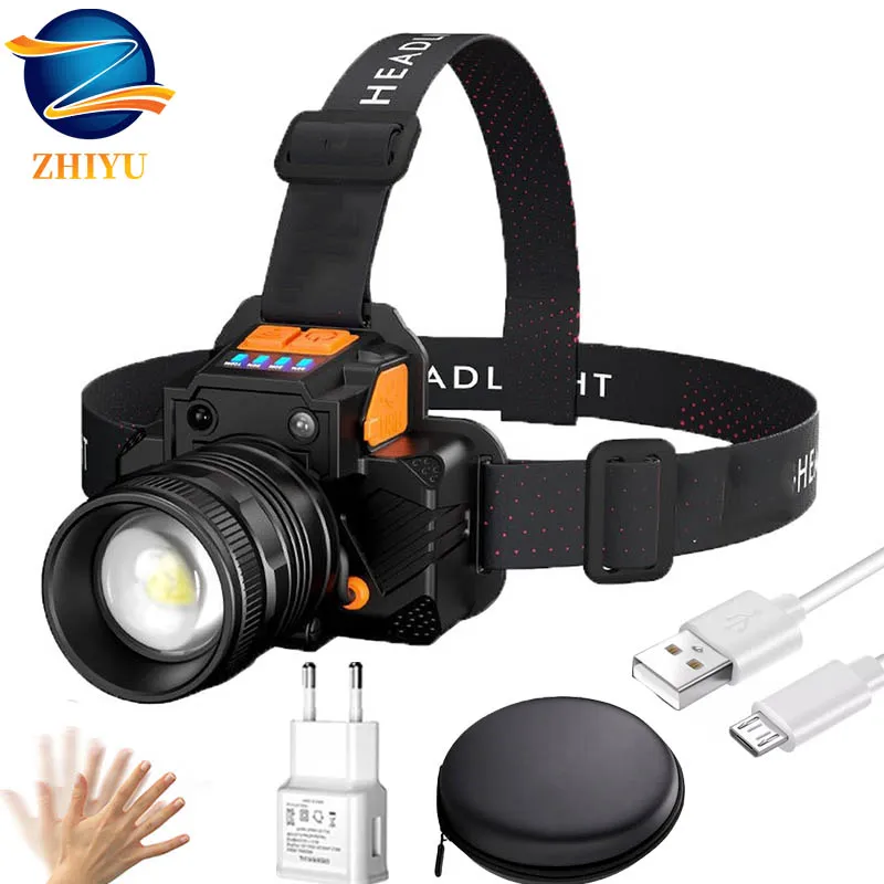 Фонарь налобный светодиодный с датчиком и зарядкой от USB, 8000 лм