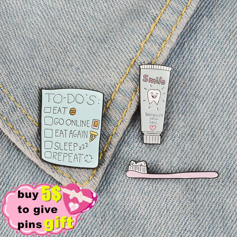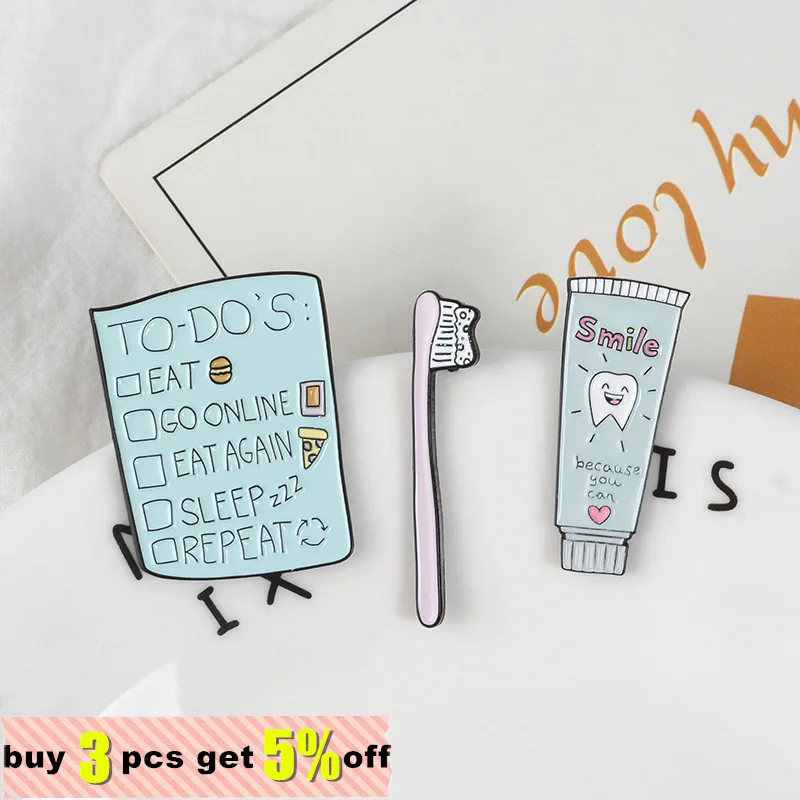 Броши с эмалью в виде зубной щетки, зубной пасты, списка дел, на за...