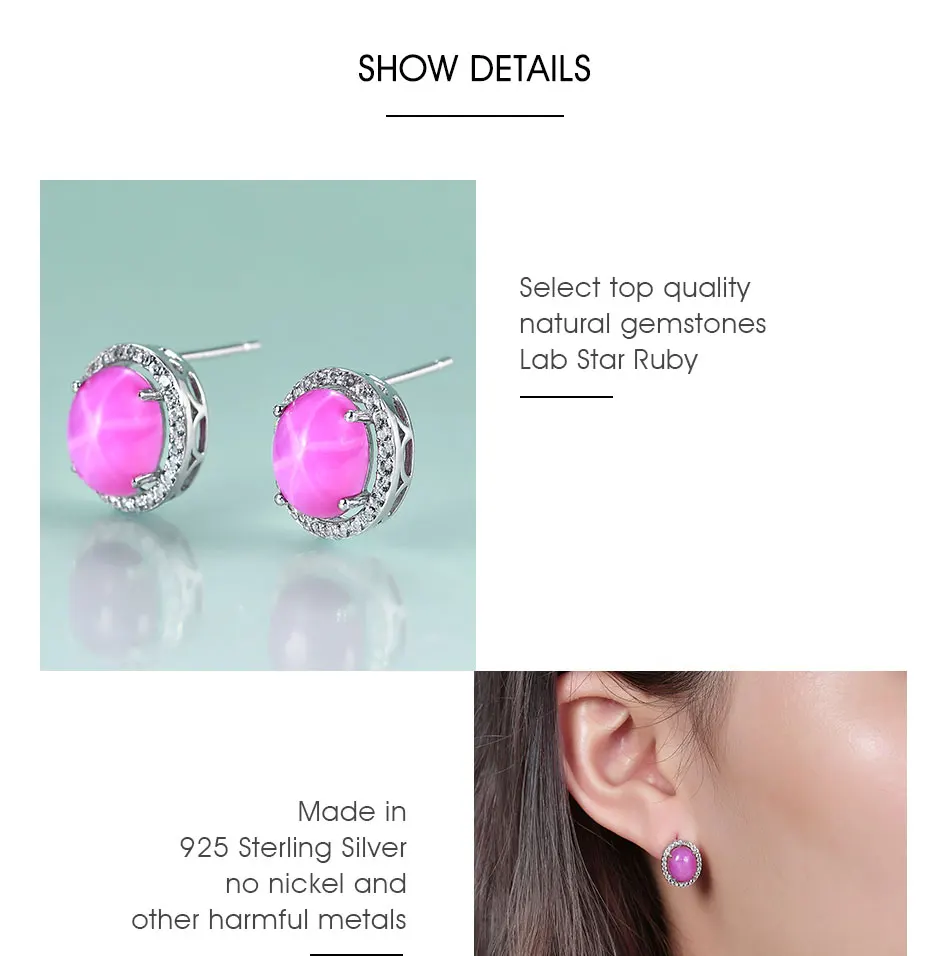 Серьги-гвоздики женские из серебра 925 пробы с овальной звездой и Рубином