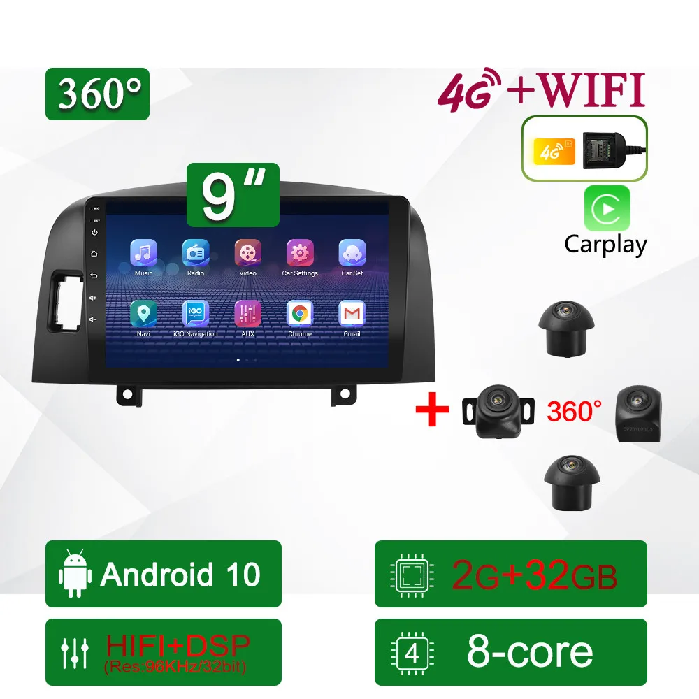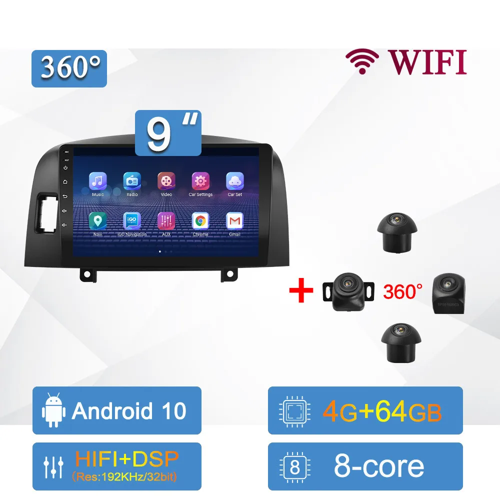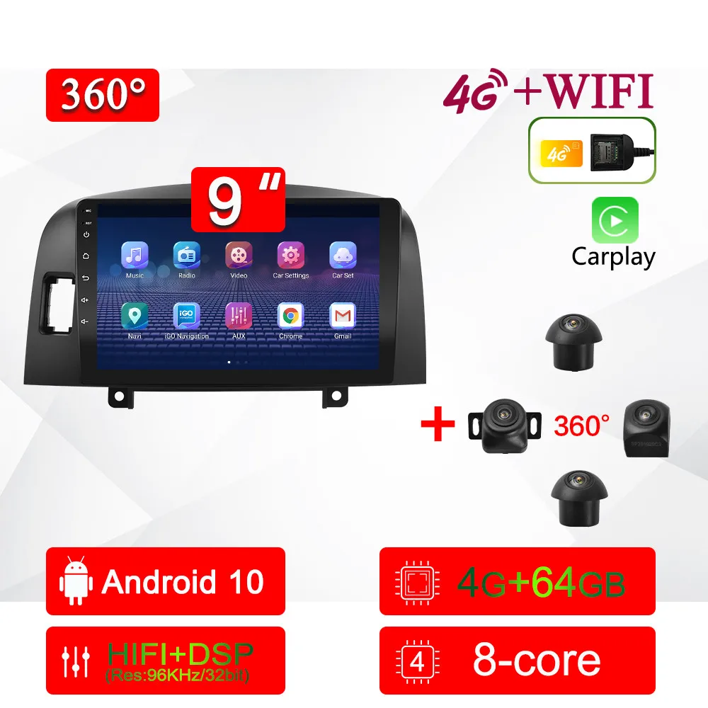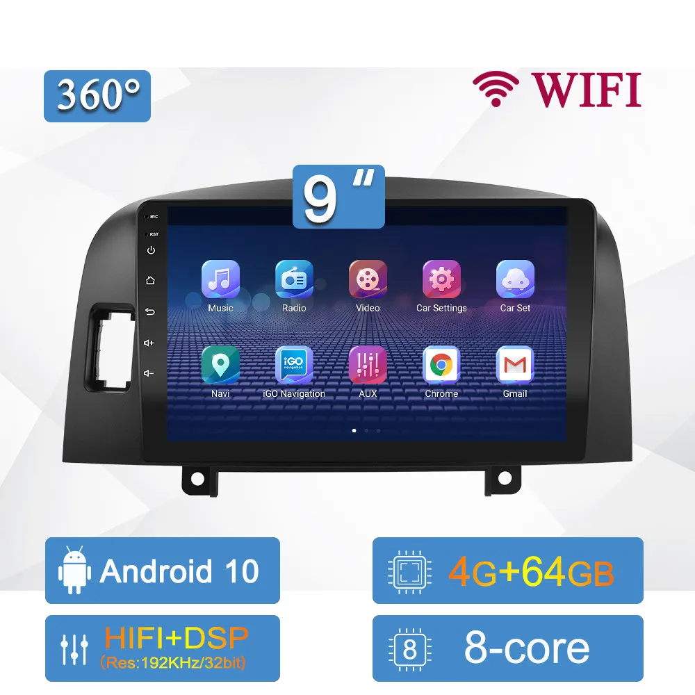 360 вспомогательная система 4G Android 10 автомобильное радио мультимедийный видеоплеер для Hyundai Sonata Yuxiang 2005-2006 навигация 2 DIN GPS