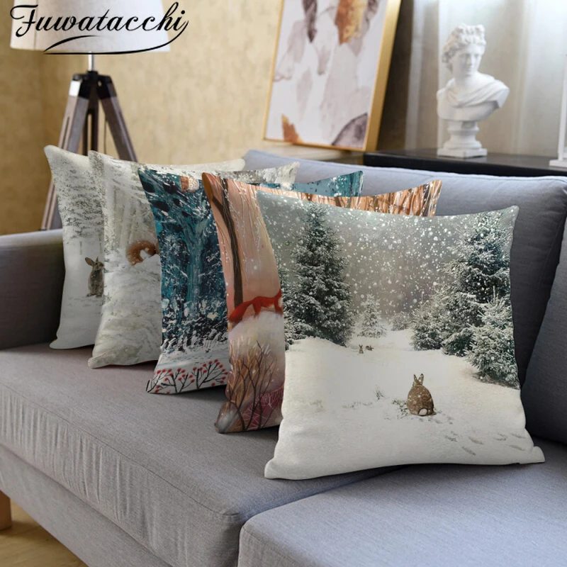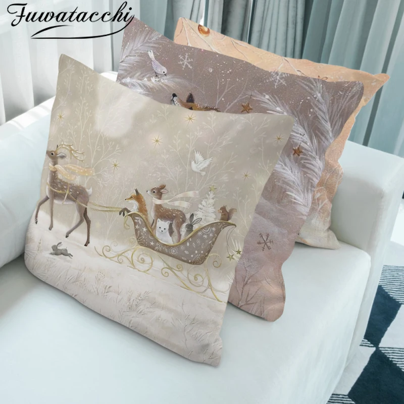 Рождественская наволочка для подушки Fuwatacchi, животные, искусственная Мягкая Наволочка для подушки, домашний декоративный чехол для дивана, подушки, чехол