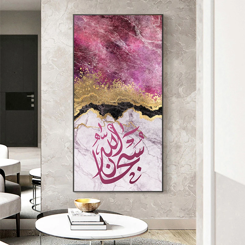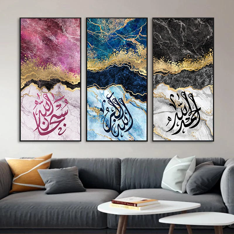 Современное мусульманское искусство с Кораном Ayat плакаты синяя и Золотая фольга Краска Печать на холсте Рисование для гостиной Декор без рамки