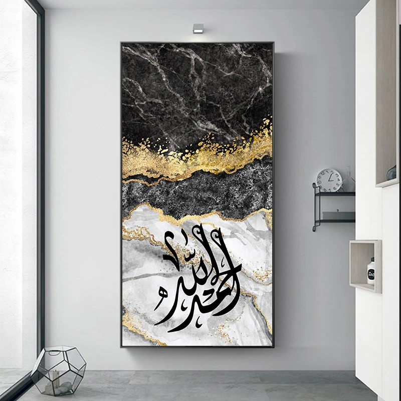 Черный Мраморный фон Золотой исламский арабский Коран Каллиграфия п...