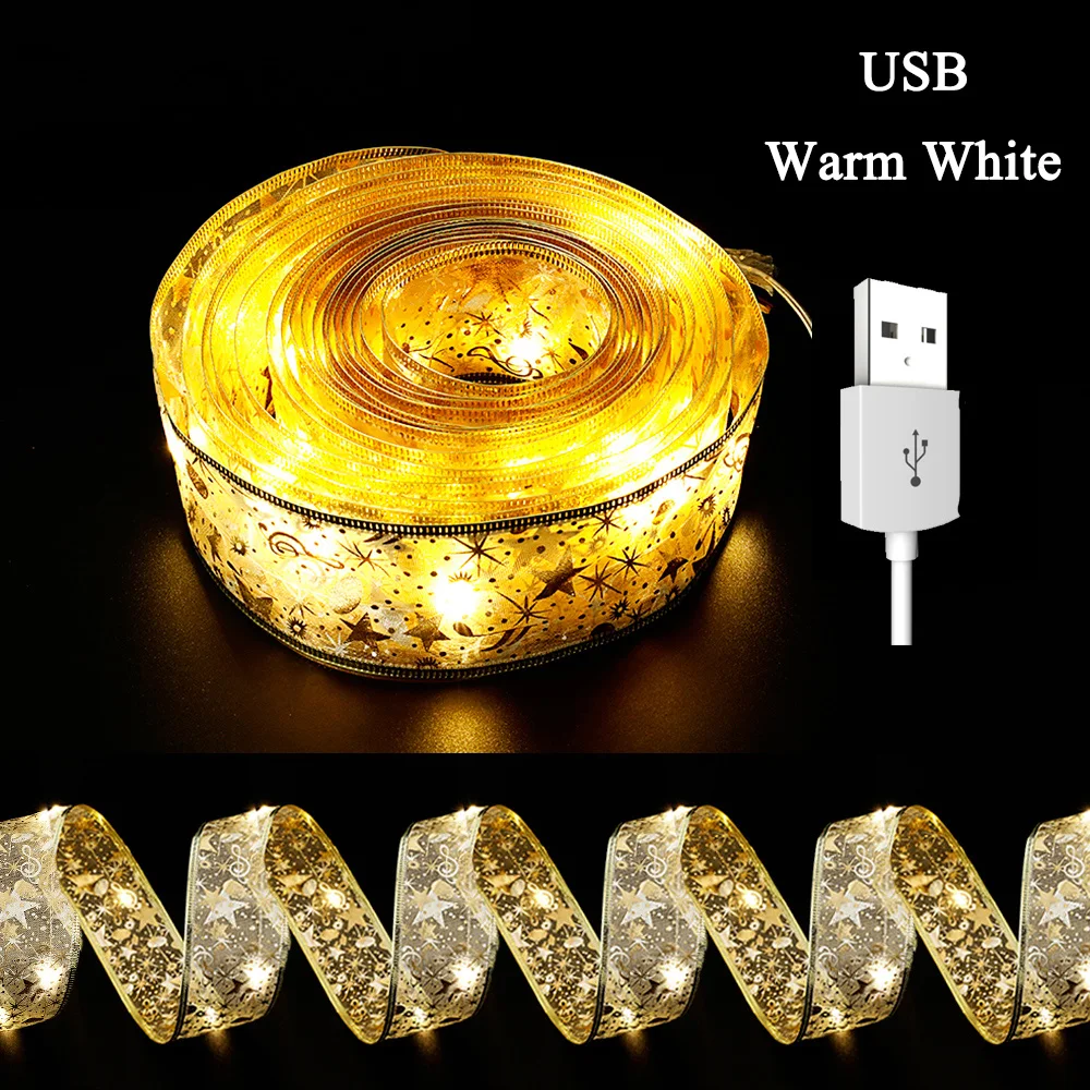 100200 Светодиодные двухслойные гирлянды, рождественские ленты, банты с USB светодиодный Рождественские украшения, новый год, Рождество, домашний декор