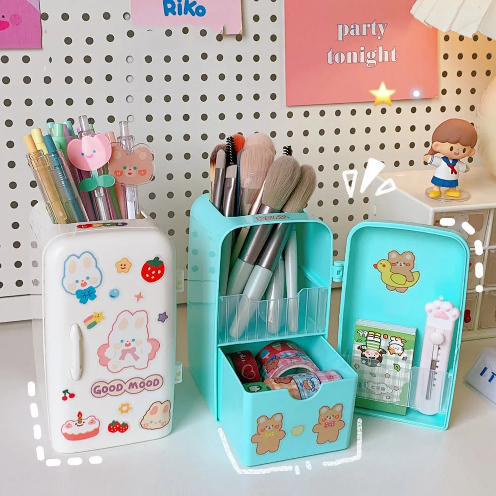 Кавайный органайзер, держатель для ручек в холодильнике, милый вместительный настольный органайзер для студентов, креативный чехол для карандашей