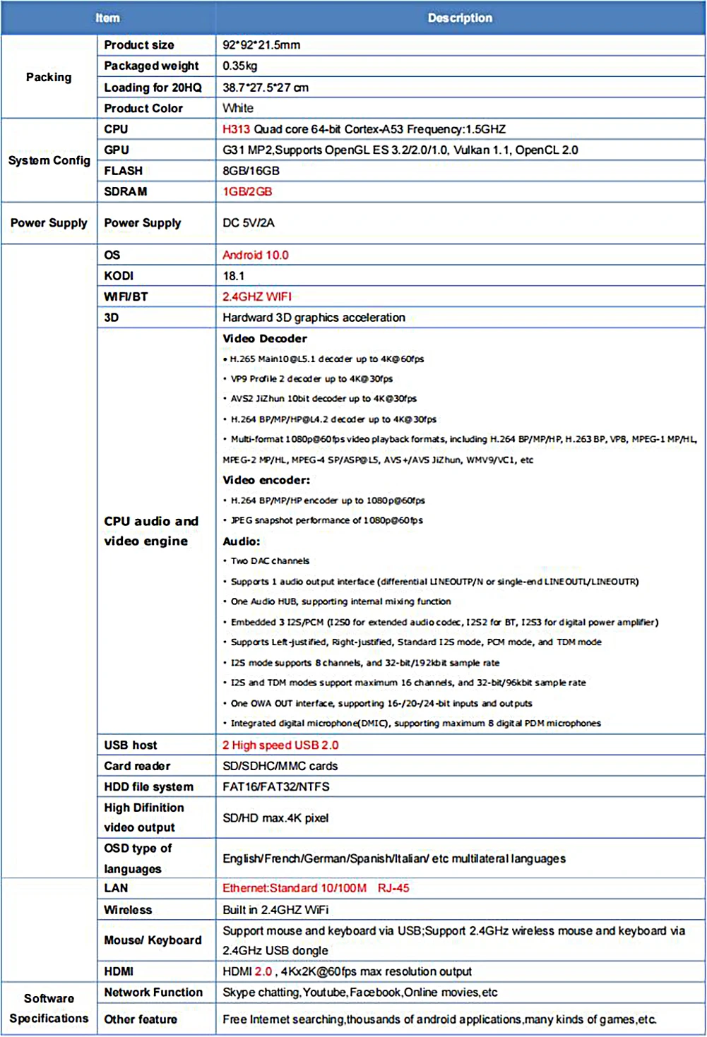 CPUH313 Quad core 64-bit Cortex-A53 Frequency:1.5GHZ