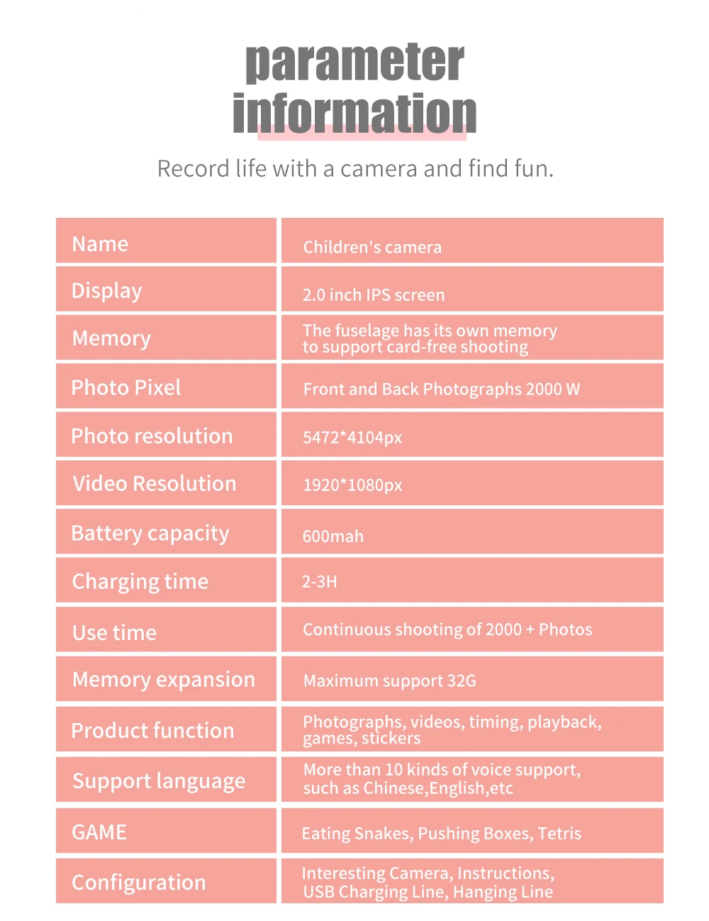 Детская камера 20MP 1080P HD фронтальная и задняя двойная камера s портативная мультипликационная Фото Видео Цифровая камера для детей подарки на день рождения