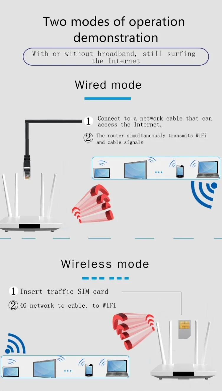 Прочитайте перед заказом:Этот маршрутизатор отключен. Но разные операторы имеют разные Частотные диапазоны в разных странах. Пожалуйста, проверьте Частотные полосы в вашей стране перед заказом, если вы все еще не знаете, чтобы выбрать, пожалуйста, свяжитесь с нами для помощи перед размещением заказа.Введение продукта:1. Этот маршрутизатор отключен. Но разные операторы имеют разные Частотные диапазоны в разных странах. Наш беспроводной маршрутизатор подходит для азиатских и европейских стран.2. Этот продукт предназначен для обеспечения пользователей высокоскоростным доступом в Интернет 3G/4G. Продукт поддерживает основные Частотные полосы 3G/4G в большинстве стран и операторов в мире.3. Просто подключите sim-карту оператора и он может осуществлять поиск и подключение для достижения высокоскоростного широкополосного доступа 3G/4G автоматически. Продукт также предоставляет горячие точки Wi-Fi, которые пользователи могут подключить мобильный телефон и компьютер для доступа к Интернету.4. Продукт в основном предназначен для пользователей SOHO, транспортных средств, деловых путешественников и путешественников на открытом воздухе, поддержка 10 ~ 32 пользователей в то же время, низкое энергопотребление; Стильный, компактный и портативный позволит вам наслаждаться высокоскоростным доступом в Интернет в любое время и в любом месте.Азиатская версия может работать в большинстве стран Европы, Азии, Африки, таких как Таиланд, Сингапур, Индонезия, Камбоджа, Бирма, Филиппины и т. Д.4G/LTE-FDD: B1/B3/B5/B8 (850/900/1800/2100 МГц)4G/LTE-TDD: B38/B39/B40/B41(1900/2300/2500/2600 МГц)3G/WCDMA:B1/B5/B8 (850/900/2100 МГц)Память: 2G GSM: B3/B8(900/1800 МГц)Европейская версия может работать во всех странах Европы, Азии, Африки, Океании, таких как Россия, Израиль, Южная Корея, Саудовская Аравия, Испания, Бразилия, Австрия, Украина, Великобритания, Франция, Германия, италия, Норвегия, Новая Зеландия, Чехия, Австралия, Нидерланды, Индия, Нигерия, Швейцария, Казахстан, Польша, Гана и т. Д.4G/LTE-FDD: B1/B3/B7/B8/B20(800/900/1800/2100/2600 МГц)4G/LTE-TDD: B38/B39/B40/B41(1900/2300/2500/2600 МГц)3G/WCDMA: B1/B8(900/2100 МГц)Память: 2G GSM: B3/B8(900/1800 МГц)Американская версия может работать во всех странах Южной и Северной Америки. Например: США, Пуэрто-Рико, Канада, Мексика, Аргентина, Чили, Парагвай, КостаРика, Перу и т. Д.4G/LTE-FDD: B2/B4/B5/B12/B17 (1900/1700/850/2600 МГц)3G/WCDMA: B2/B4/B5 (1900/1700/850 МГц)Примечание:Возможны незначительные отклонения из-за ручного измерения.Из-за разницы между различными мониторами изображение может не отражать фактический цвет товара. При возникновении любых проблем, пожалуйста, свяжитесь с нами!Посылка включает в себя:1 x 4G-CPE маршрутизатор1 кабель RJ451 х адаптер питания постоянного тока1 x Руководство пользователя
