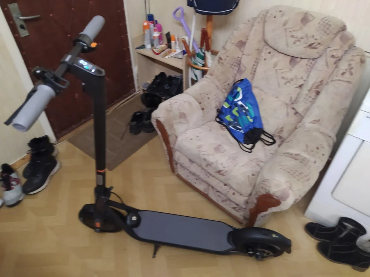 Отправку пришлось ждать долго... Ох уж эти акции 11/11. Но после отправки получил очень быстро. Коробке досталось сильно, но вмятин не было. Хотя закралось подозрение, что коробку открывали, но даже если и открывали, самокат не трогали. Протестировать удалось только по квартире :) Все работает. К приложению подключился, обновил прошивку. Поставлен на зарядку. В ожидании сезона или хорошей сухой погоды.