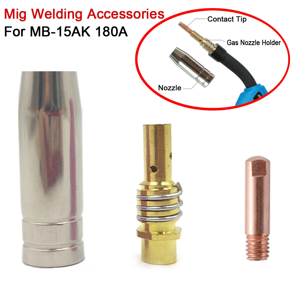 3 шт., расходные материалы для сварочных горелок 0,6 мм, 0,8 мм, 0,9 мм, 1,0 мм, 1,2 мм, сварочные наконечники, газовые сопла, диффузор для сварочных горелок MB 15AK