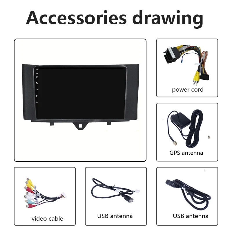 Продукт подходит для: Benz Smart Fortwo 2010-20151. Поддержка операционной системы: Система Android 11,0.2. Поддержка 6 ГБ RAM.(4 ГБ/2 ГБ RAM)3. Поддержка 128 ГБ ROM.(64 Гб/32 ГБ ROM)4. Поддержка 4 /8 ядер ЦП.5. Наш кабель подключен и работает, нет необходимости резать оригинальный автомобильный кабель.Характеристика:1. Поддержка 9 дюймов сенсорный экран2. Поддержка функции воспроизведения и хранения3. Встроенная система gps-навигации.4. Поддержка функции двойной зоны.5. Поддержка воспроизведения видео 1080p.6. Поддерживает высококачественный музыкальный выход.7. Встроенный беспроводной приемник.8. Поддержка usb-входа.9. Поддержка отображения даты и времени.10. Поддерживает Bluetooth музыку и Bluetooth мобильный телефон.11. Поддержка управления папками.12. Поддержка графического интерфейса пользователя.13. Поддержка установки приложений.14. Поддержка функции календаря.15. Поддержка функции камеры заднего хода (опционально).16. Поддержка функции DAB radio (опционально)
