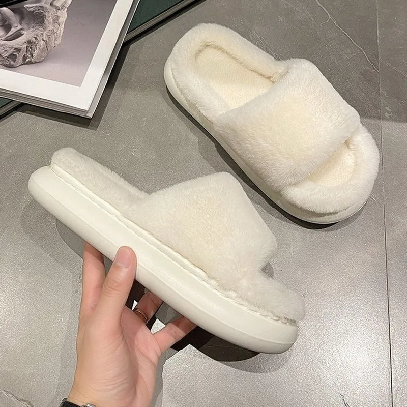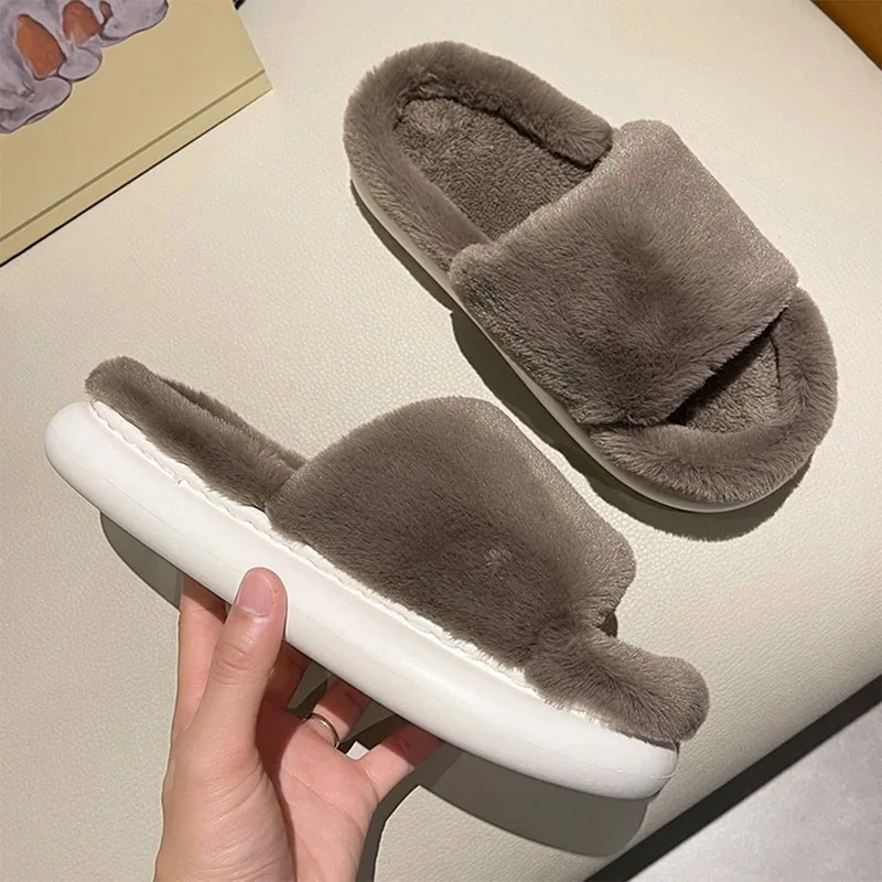 Тапки женские меховые на толстой подошве 3 см, теплые Сверхмягкие домашние тапочки на платформе, хлопковые меховые сланцы для дома, спальни