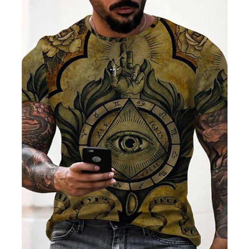 Новинка 2021, Мужская футболка с 3D-принтом в стиле тату, летний По...