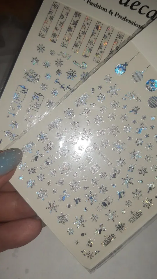 наклейки хорошие, в меру плотные. уже делала дизайн крепится хорошо. ёлочки достаточно большие, не на любой ноготь