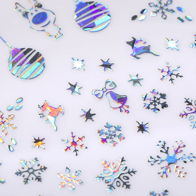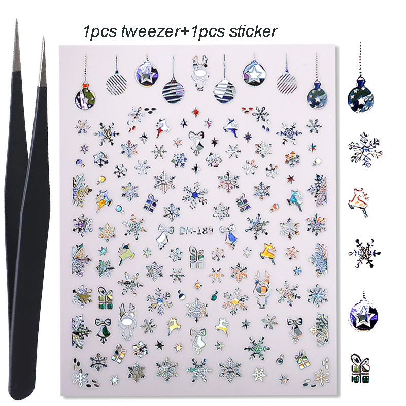 1 Набор рождественских серебряных 3D наклеек для ногтей с пинцетом, снежинками, звездочками, декоративные переводные наклейки для ногтей, маникюр, слайд