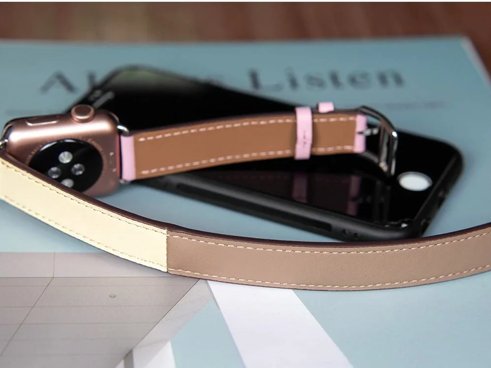 Новый кожаный ремешок для apple watch se Double Tour band 44 мм 40 ...
