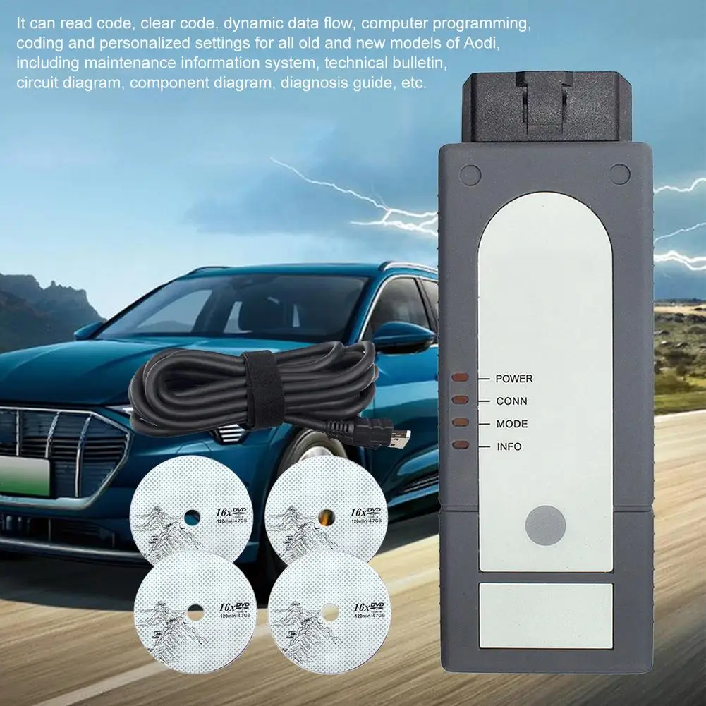 Audi diagnostic VCI, поддерживает беспроводное подключение, проводное usb-соединение, совместимо с диагностическим протоколом Volkswagen Audi, поддерживает диагностику и программирование системы Volkswagen и Audi, может использоваться с 6150B, 6160A, И также может быть совместим с программным обеспечением ODIS, широко используемым на рынке.Упаковочный лист:1 * ДетекторПримечание:1. Удалите защитное программное обеспечение на компьютере. Обратите внимание, что он не только выходит из строя, но и удаляется. Защитное программное обеспечение будет сильно удалять некоторые из наших программ.2. Инструкции по установке: прилагается к ссылке для скачивания. Программное обеспечение 13,3G.3. Установка одним нажатием будет следовать языку по умолчанию компьютерной системы для установки, была протестирована, английский язык возможен.4,6154 устройство, вам нужно отправить драйвер клиенту после установки программного обеспечения, он никогда не будет подключен без драйвера.5. Поддерживает только для WIN7, для WIN10 системы для XP и для WIN8 не поддержка Минимальная конфигурация компьютера: Оперативная память 4G, WIN7 32-bit. 6. Это программное обеспечение несовместимо с другим программным обеспечением для диагностики ПК. Рекомендуется, чтобы компьютер клиента не устанавливал другое программное обеспечение. Если компьютер уже имеет другое программное обеспечение, это может привести к ошибкам программного обеспечения во время процесса установки: обнаружение существующих ODIS