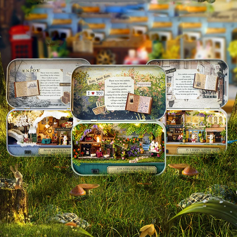 Деревянный кукольный домик в коробке, театральный миниатюрный домашний кукольный домик с ностальгической тематикой, аксессуары для мебели, игрушки для детей