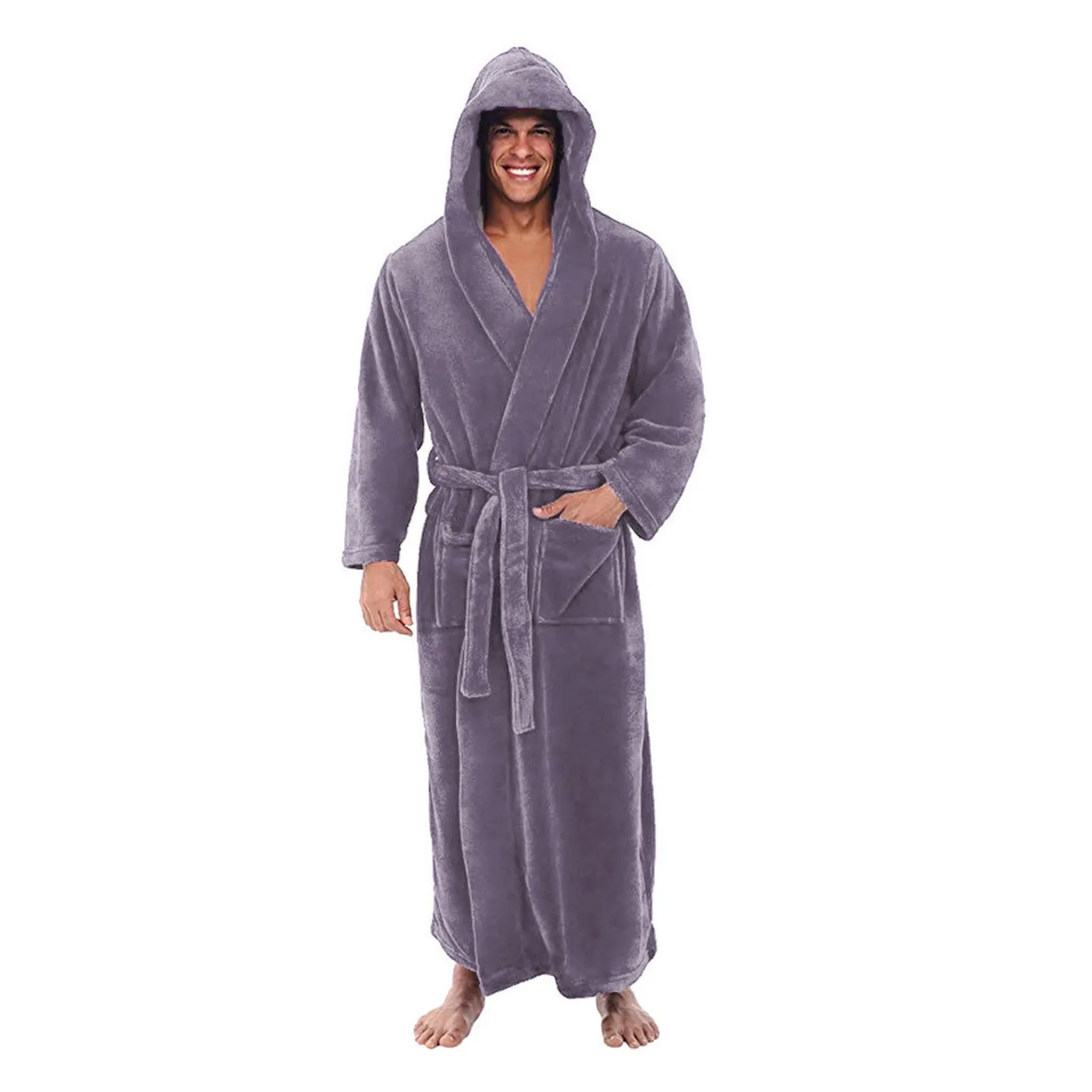 Мужские зимние плюшевые халаты, удлиненный халат, домашняя одежда, ...