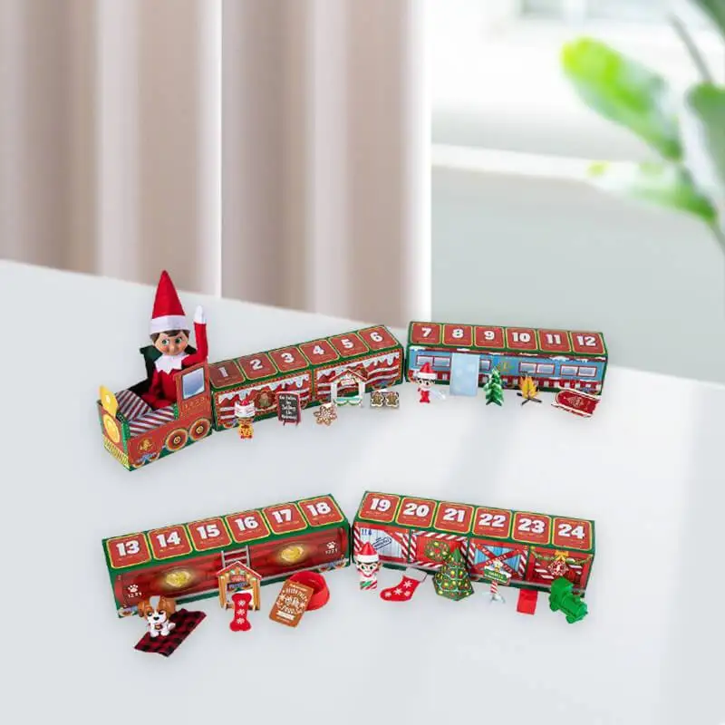 24 дня обратного отсчета, 1 набор, рождественские украшения, подарки для детей, мультяшный Рождественский эльф, бумажный поезд, игрушки, Прямая поставка