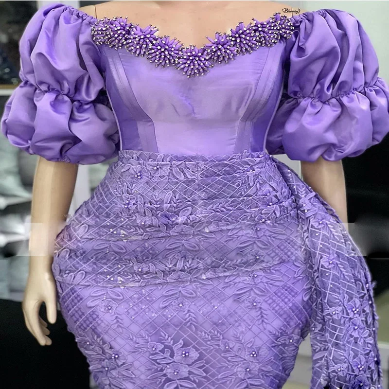 Женское вечернее платье-русалка, платье лавандового и фиолетового цвета с полурукавами, расшитое бисером, юбка-годе, платье для выпускного вечера, кружевное платье в арабском стиле, со складками
