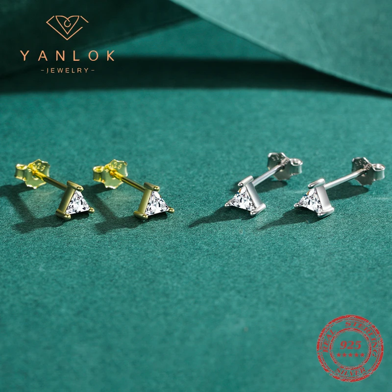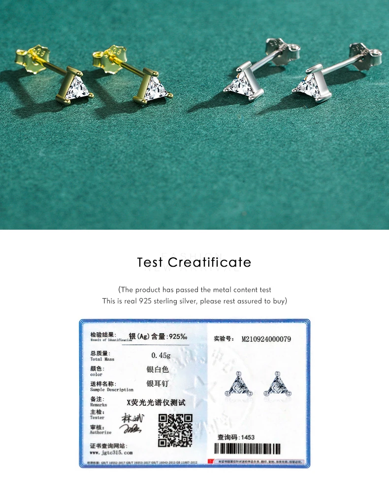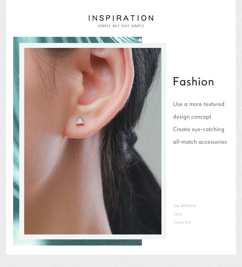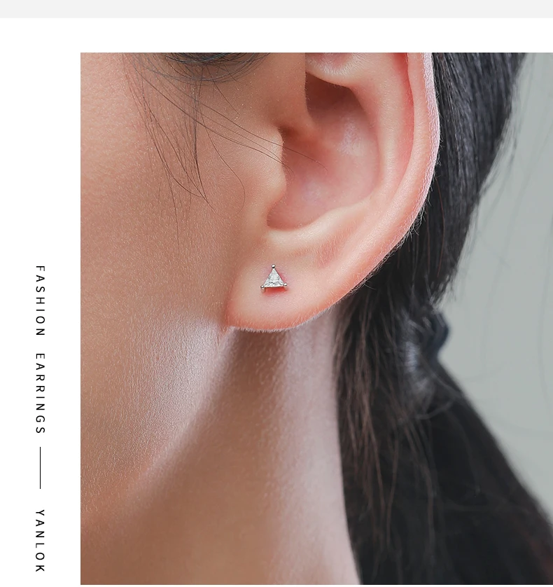Женские треугольные серьги-гвоздики из серебра 925 пробы с фианитами