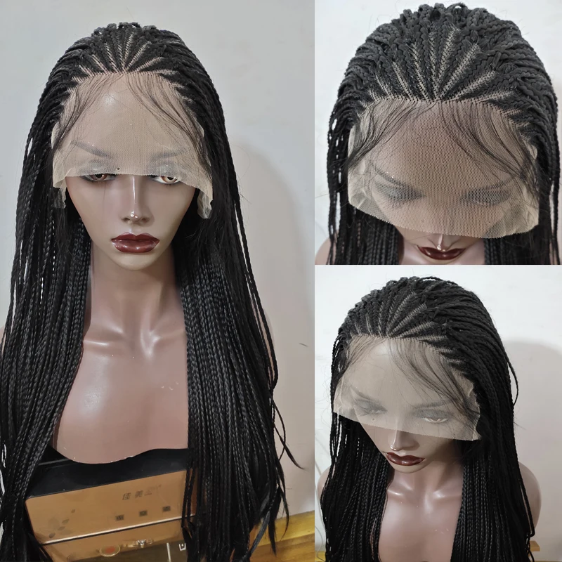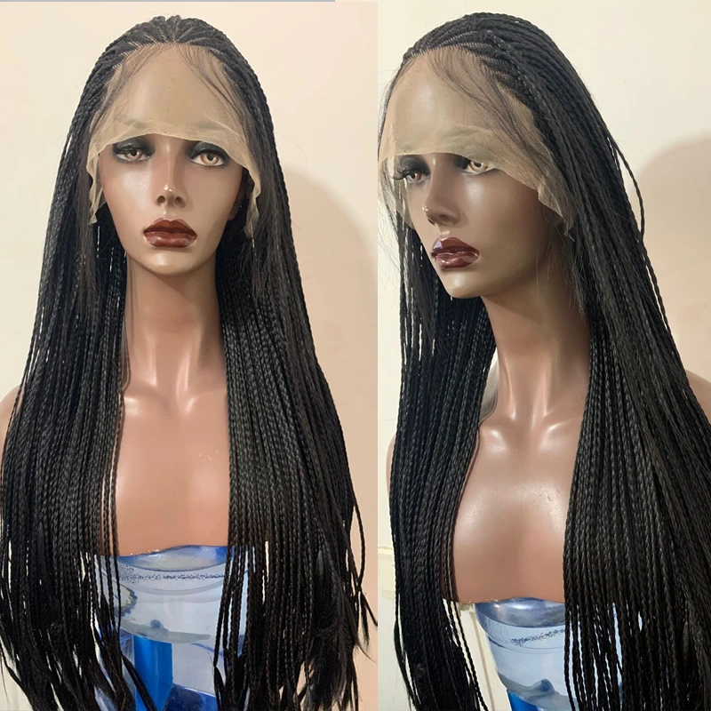 Предварительно выплетенный длинный синтетический парик 13*4 на сетке спереди для женщин, Плетеный парик из черных волос в косичке, парик из высокотемпературного волокна, парики на сетке