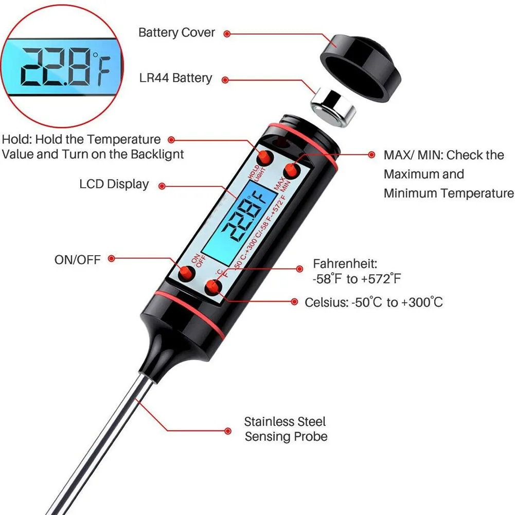 Цифровой пищевой термометр, портативный кухонный прибор для измерения температуры в домашних условиях, для барбекю, воды, молока, масла