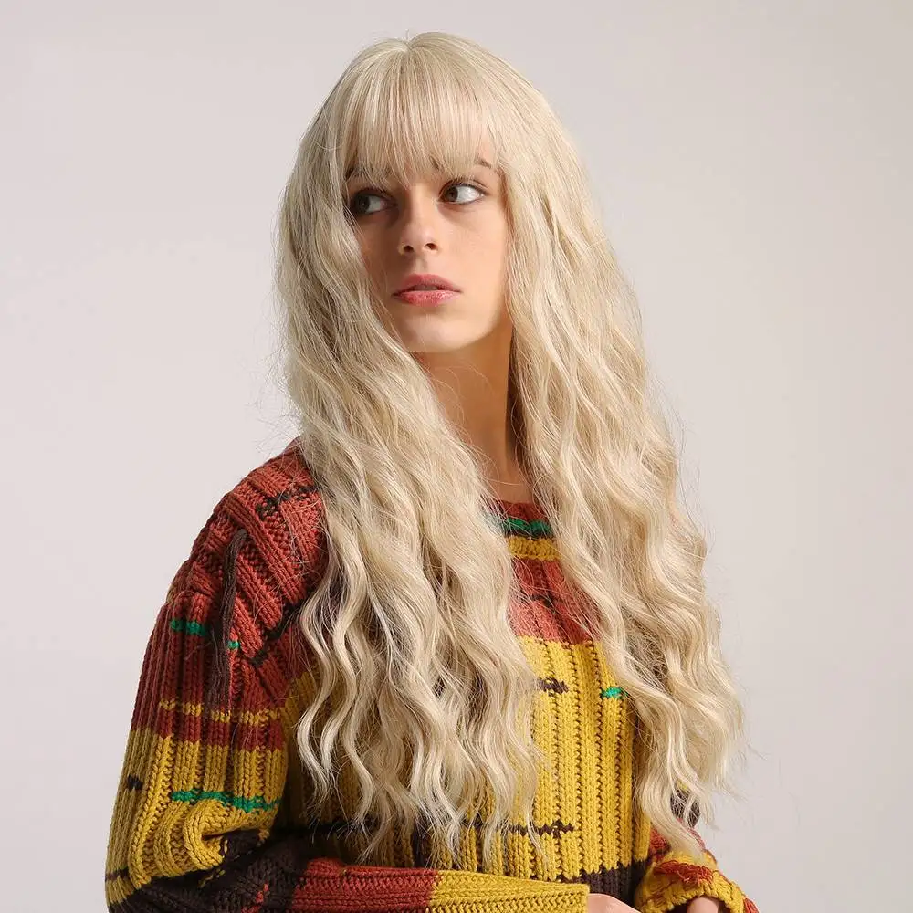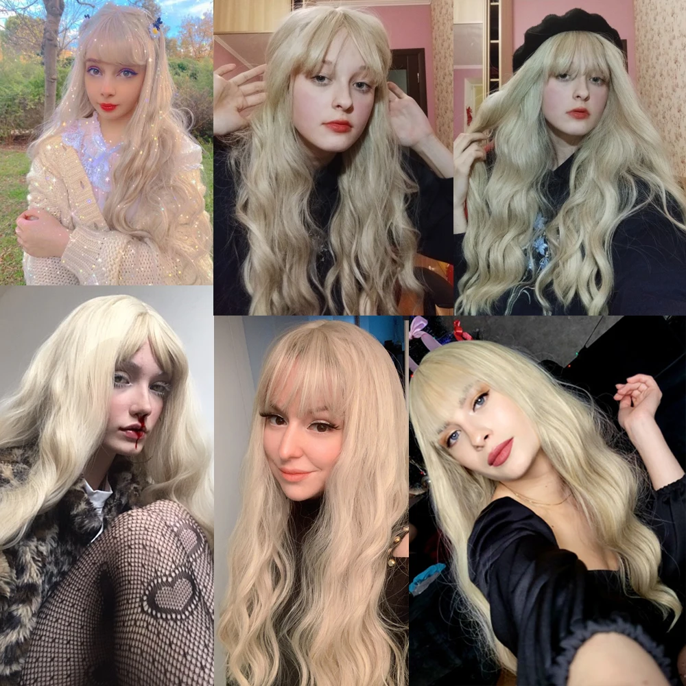 Женский парик с челкой Генри маргу, однотонные светлые синтетические длинные волнистые волосы, термостойкий, для косплея, Лолита