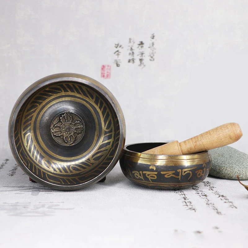 Тибетская медная чаша для медитации, чёрный звук пения, буддийские ...