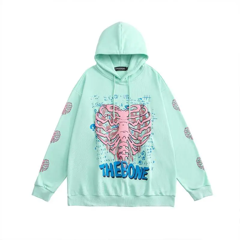 Y2K розовый худи скелет женский осенний уличный пуловер готические ...