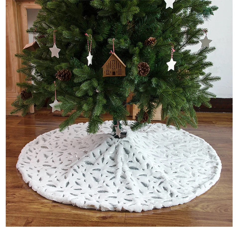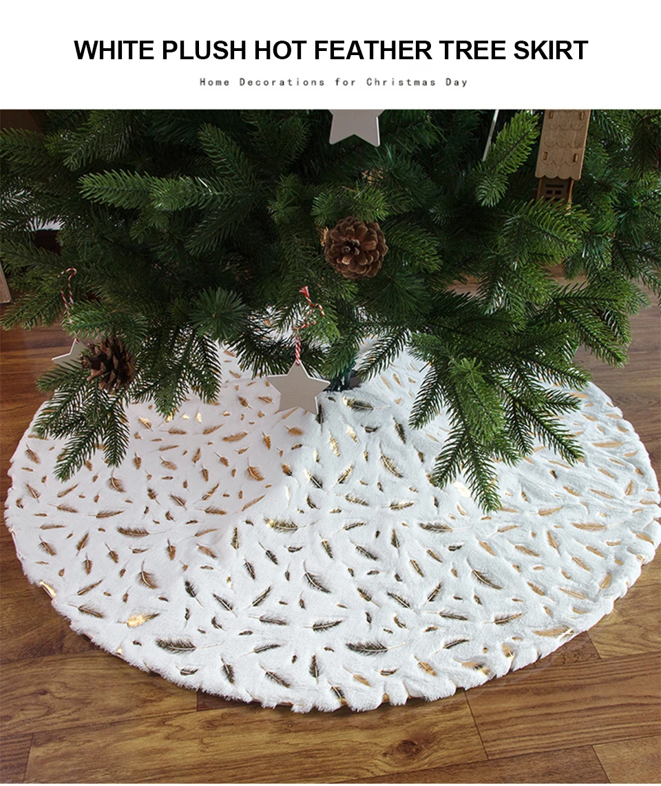 2022 декор для рождественской елки, бронзовое перо, белая юбка для рождественской елки, меховая юбка для рождественских украшений, рождественский подарок