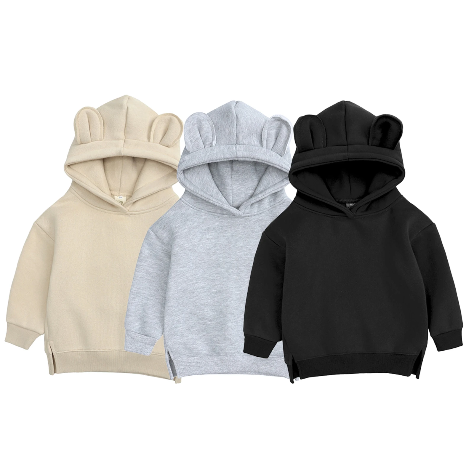 Осенние повседневные детские толстовки FOCUSNORM для девочек и мальчиков, верхняя одежда, однотонный цветной пуловер с капюшоном с 3D ушками и длинным рукавом, топы