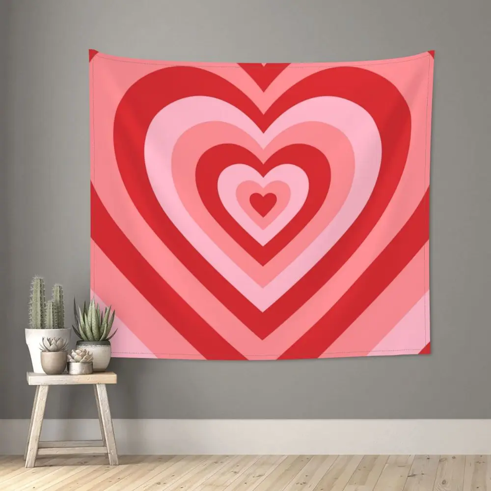 Ретро психоделический розовый гобелен в форме сердца Y2k, настенное украшение, хиппи, Полиэстеровые гобелены, Мандала INS, одеяло, Настенный декор, 95x73 см