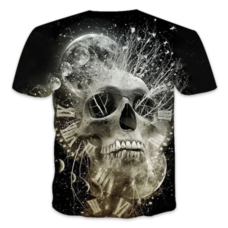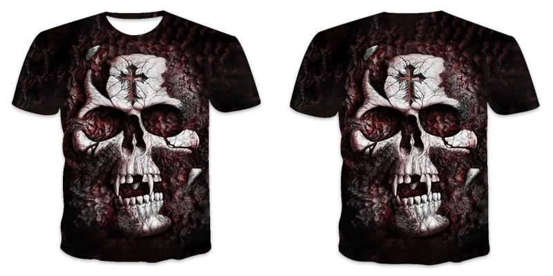 Летняя темная Мужская футболка с 3D-принтом черепа в стиле панк-рок, мужская повседневная футболка большого размера с короткими рукавами и воротником 2021O