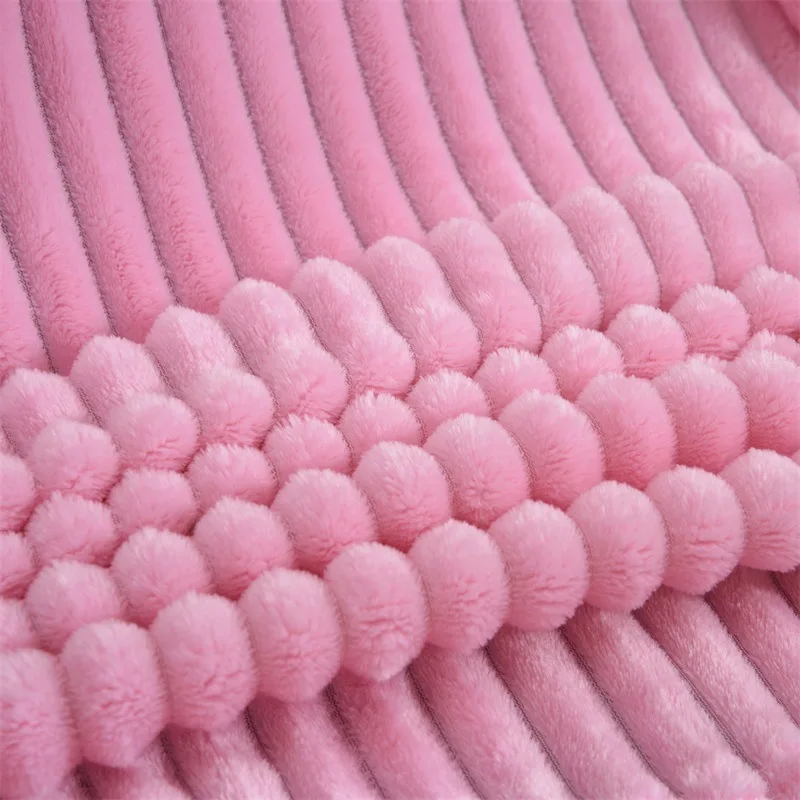 Одеяла для кроватей Однотонное полосатое одеяло из кораллового флис...