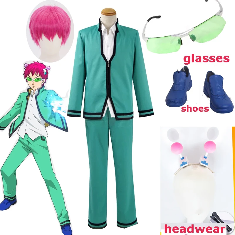 Костюмы для косплея аниме Саики кузуо но Сай-Нан, униформа Саики кузуо, топы, брюки, очки, головной убор, парики, реквизит для взрослых на Хэллоуин