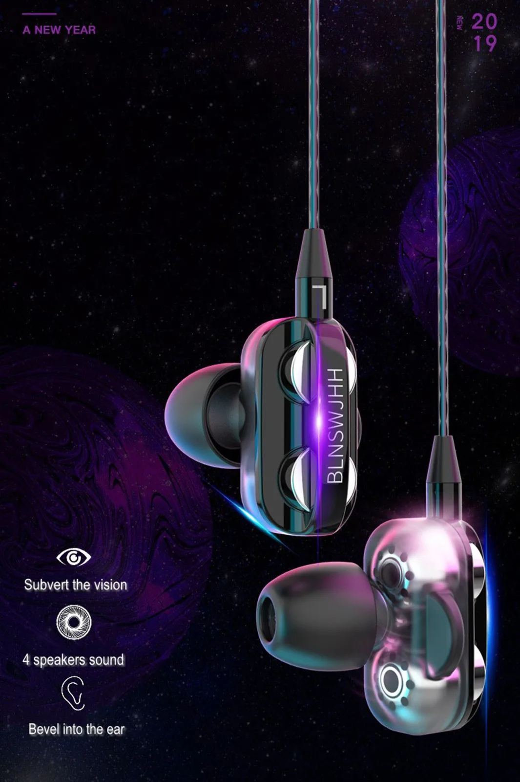 Четырехъядерные двухдвижущиеся проводные наушники с интерфейсом Typ...