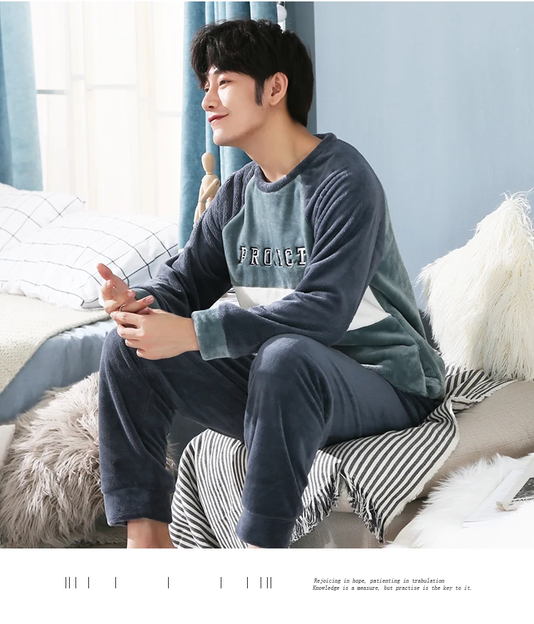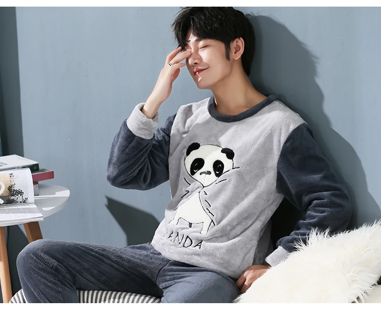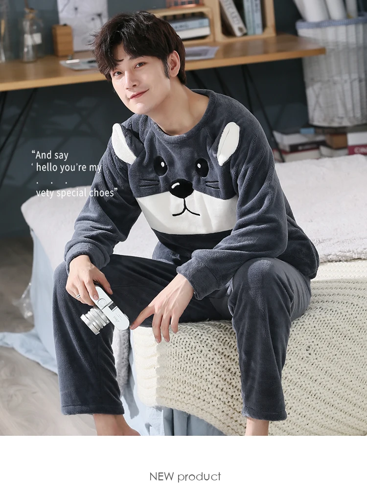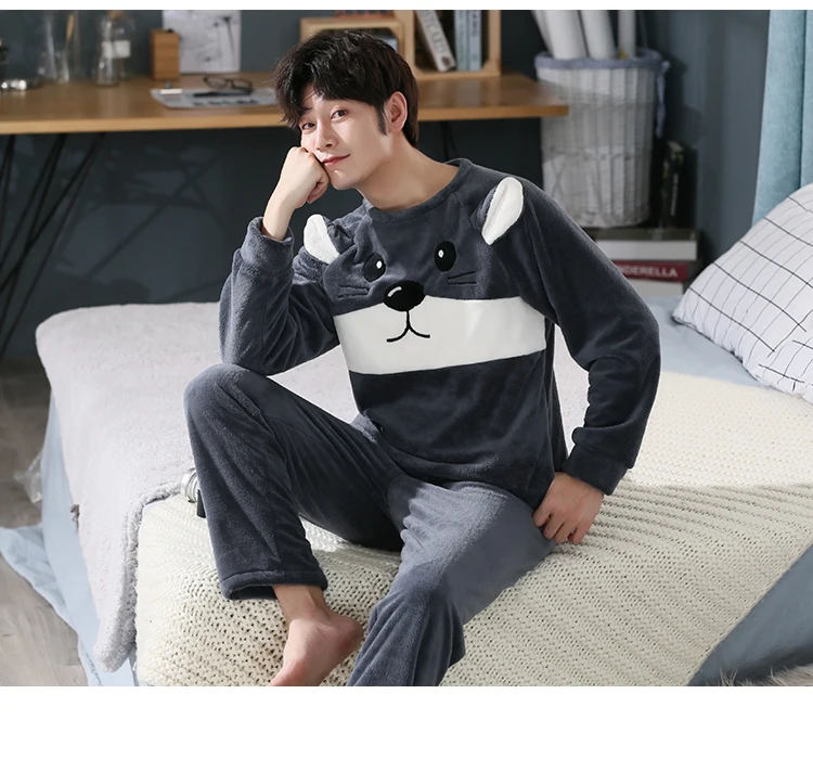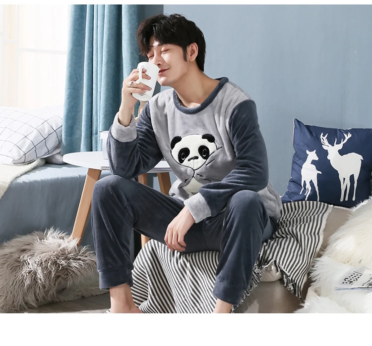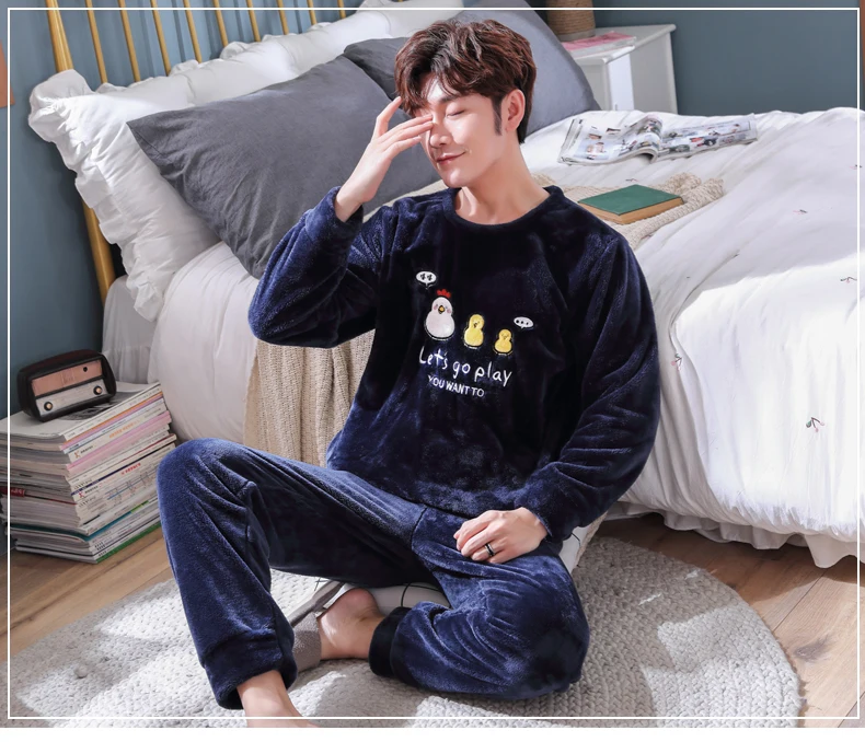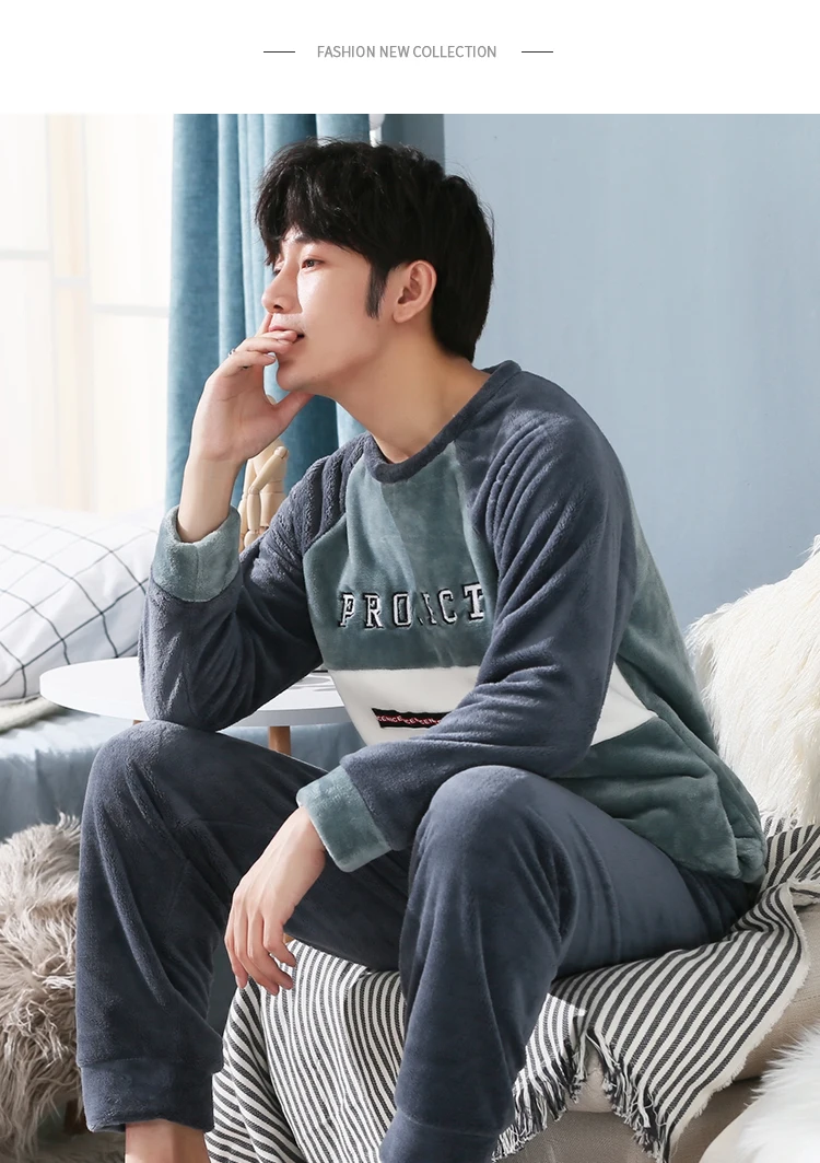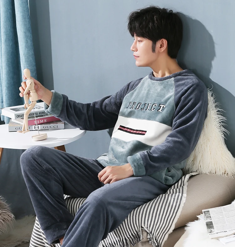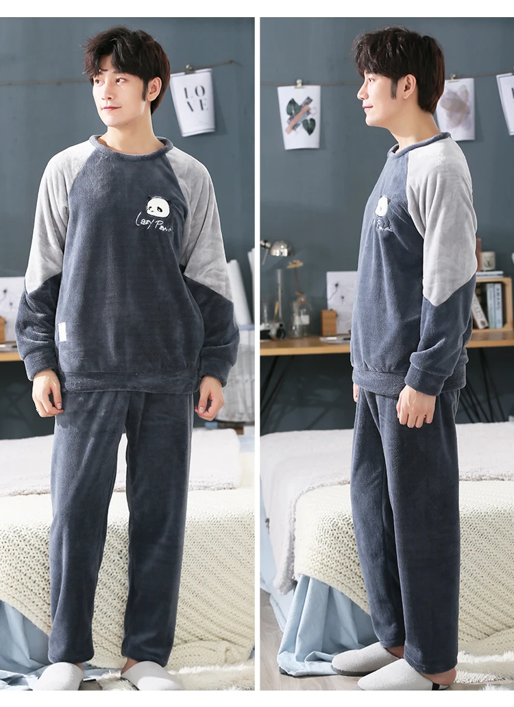 Пижамный комплект мужской фланелевый, одежда для сна, длинные штаны...