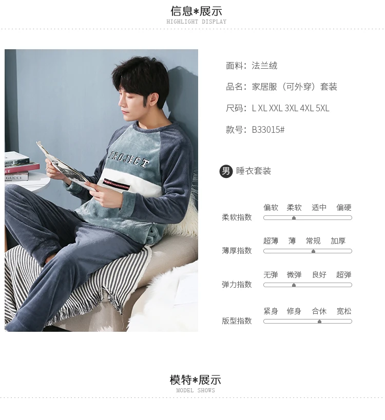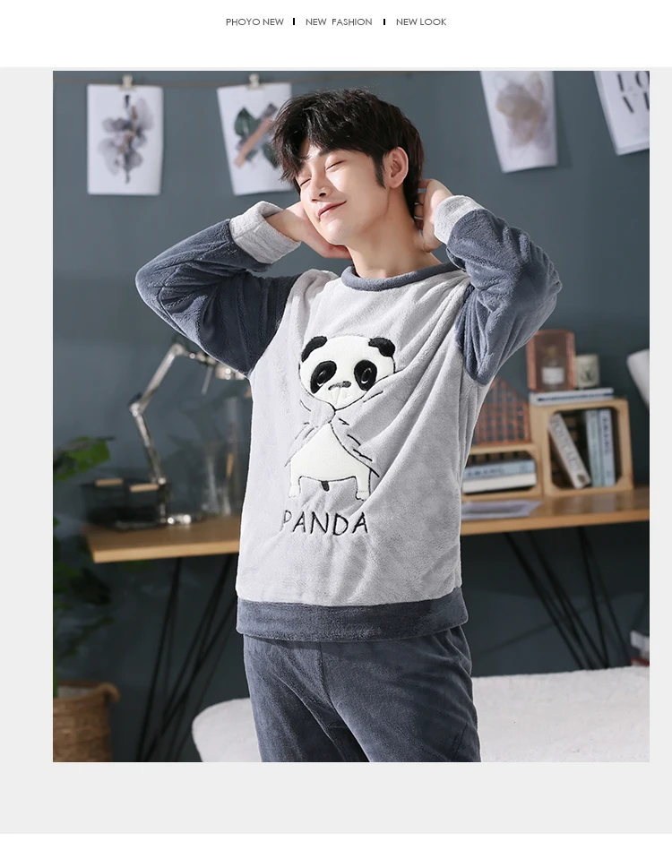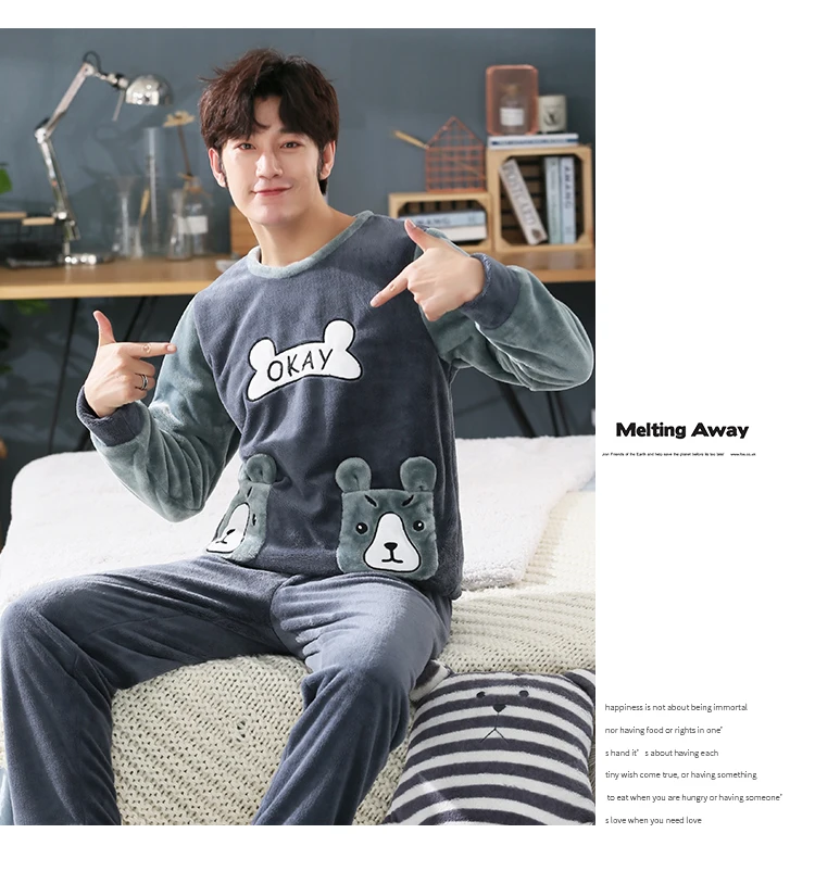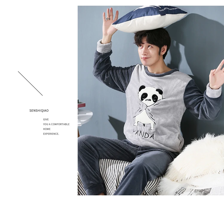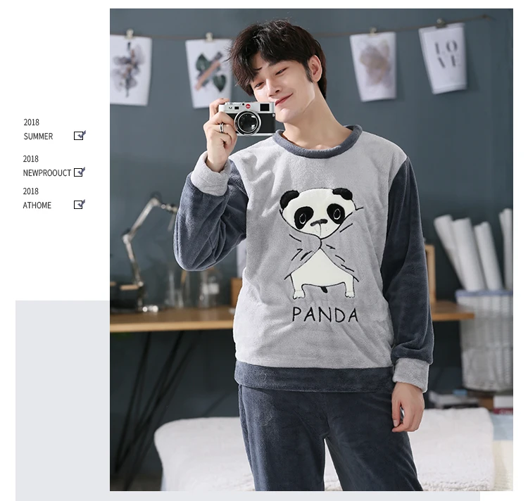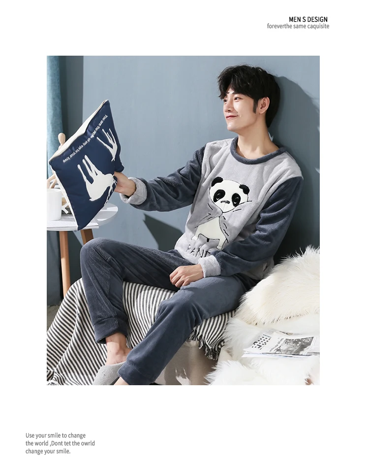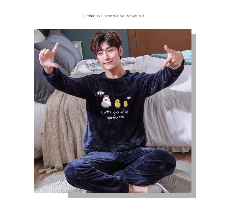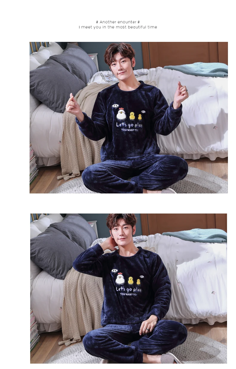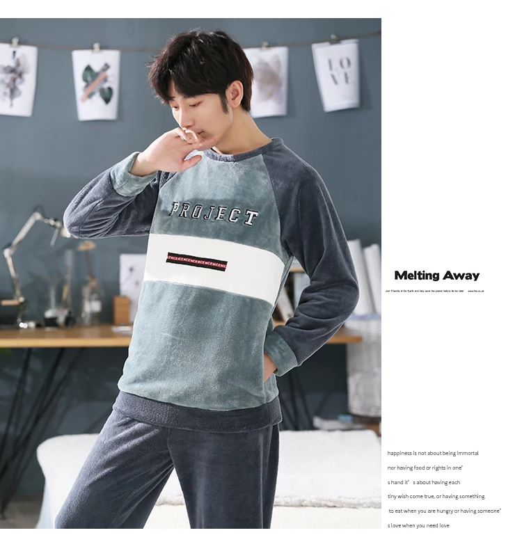 Пижамный комплект мужской фланелевый, одежда для сна, длинные штаны...