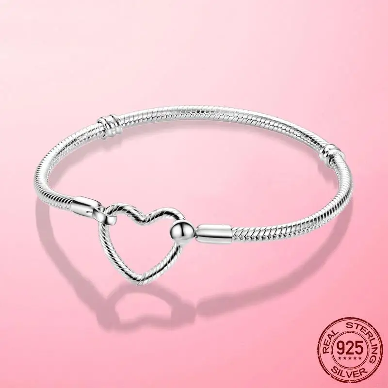 Модный женский браслет из серебра 925 пробы с застежкой в форме сердца змеиная цепочка браслет для женщин Pulseras Mujer ювелирные изделия