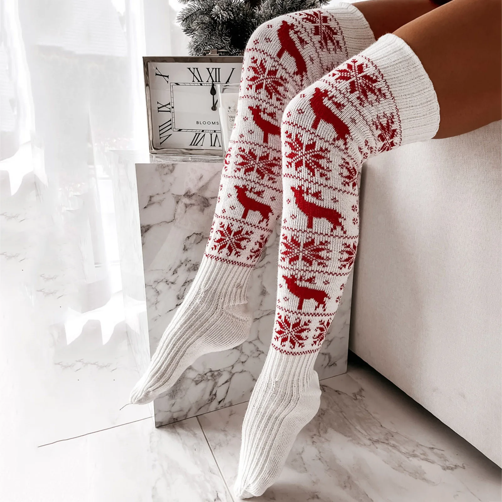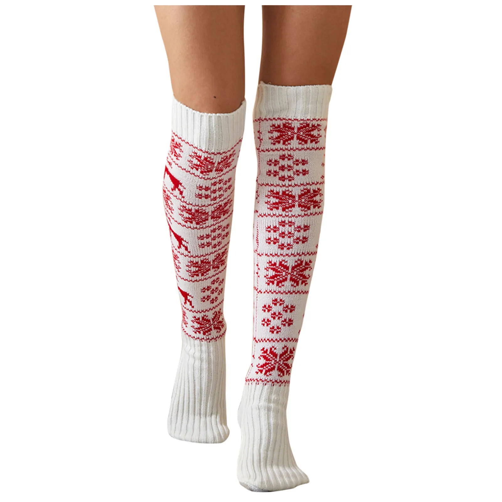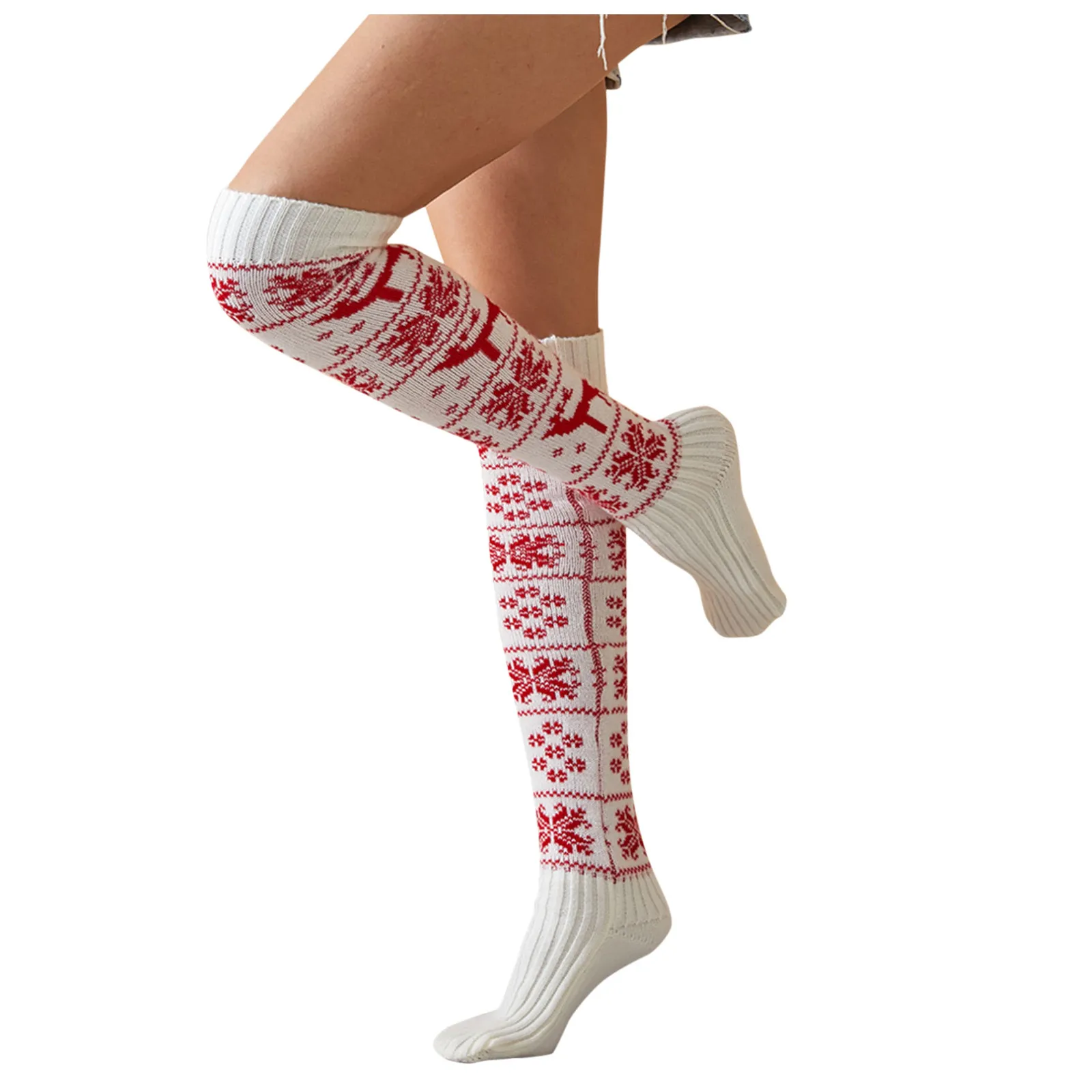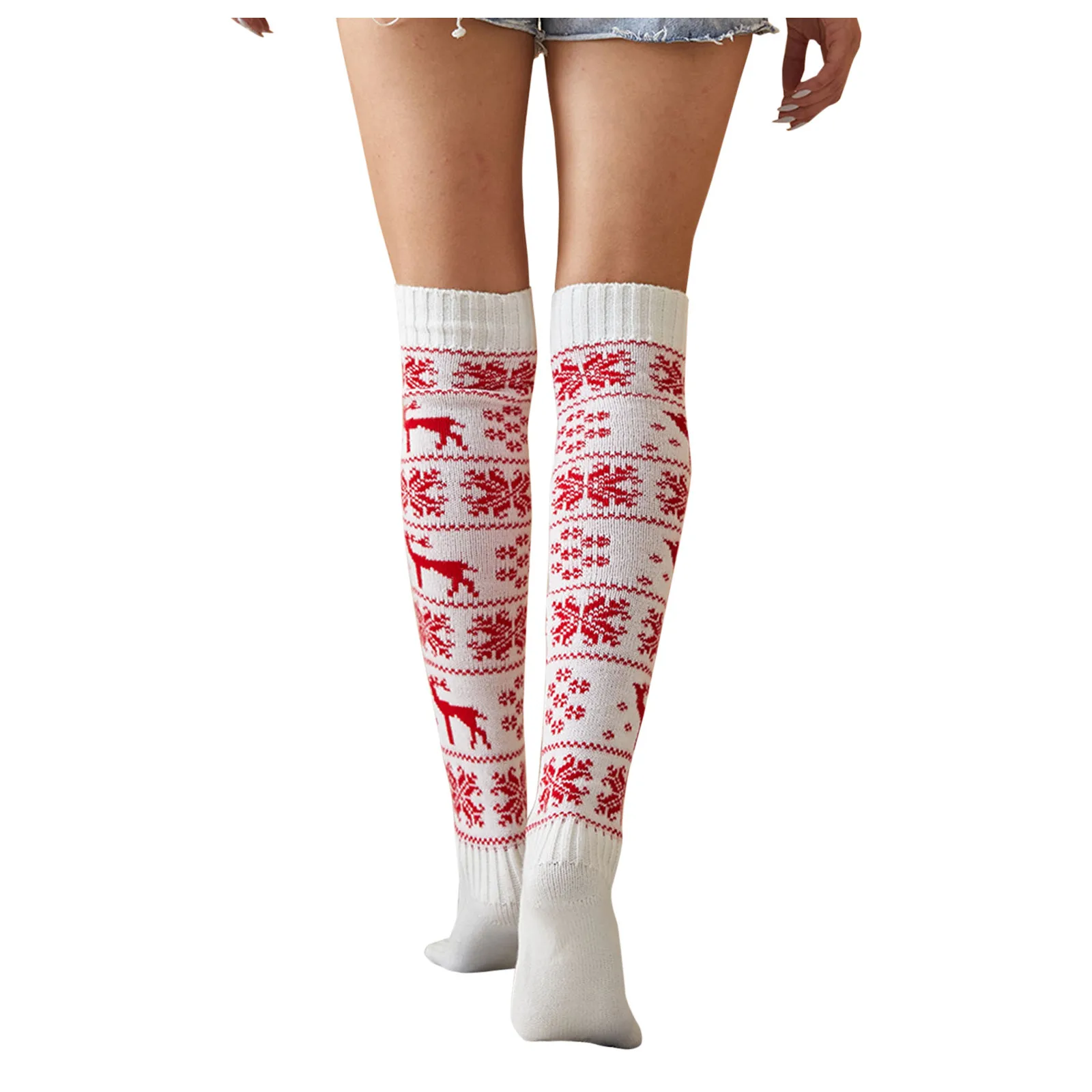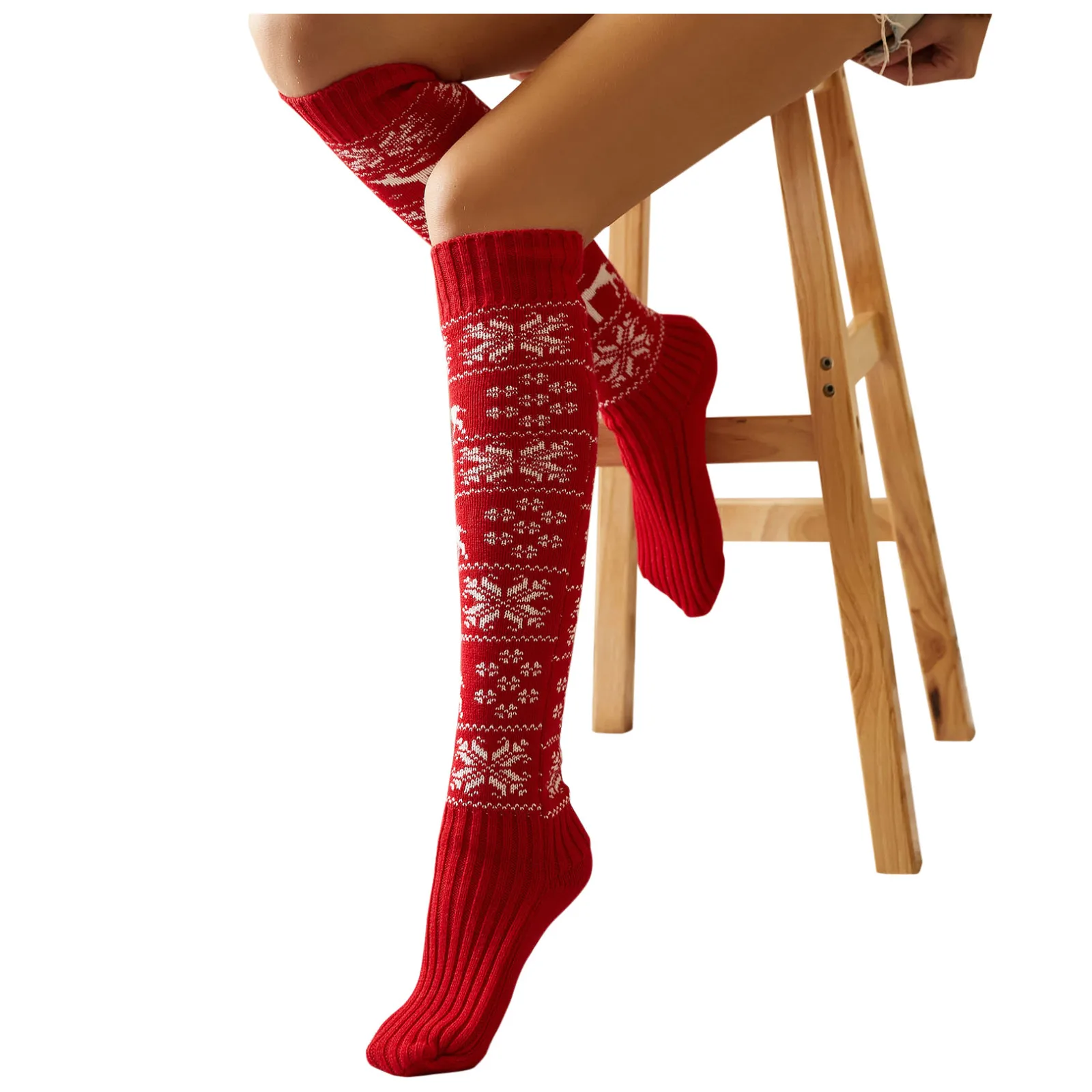 Женские Рождественские теплые Гольфы выше колена для девушек и женщин; Длинные хлопковые чулки; Вязаные теплые чулки