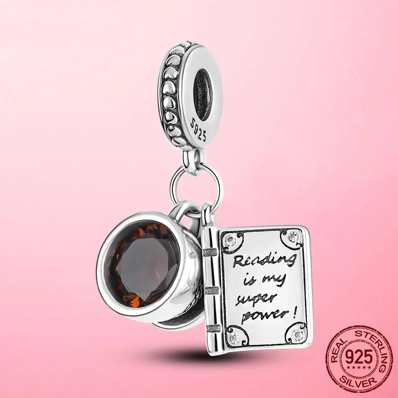 Подвеска-Шарм кофейная чашка из серебра 925 пробы с бусинами Книга подходит для браслета Pandora оригинальный Шарм-подвеска из серебра 925 пробы ювелирные изделия в подарок