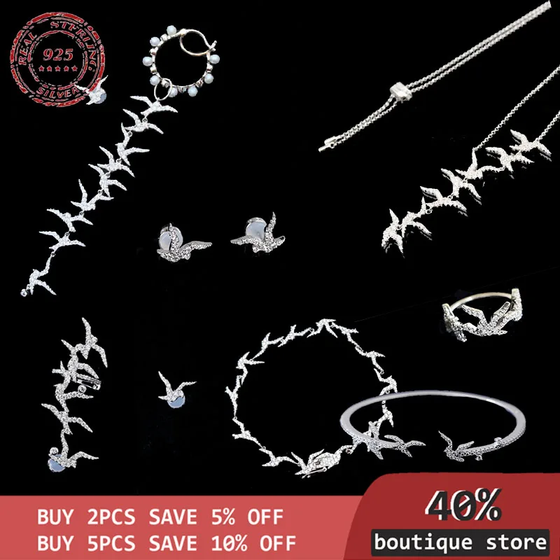 Серебряные серьги S925, асимметричные серьги в виде голубей, персонализированные ювелирные изделия, брендовые роскошные, 925 пробы серебряный комплект