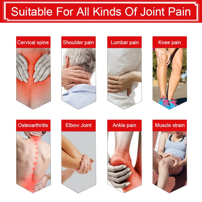 Индикация:1. Улучшает кровообращение, облегчение боли, зуд, мышечные боли и боли, усиливает местный обмен веществ, анти воспаление, анти отеки.2. Гиперостеогены, замороженные плечи, ревматоидный артрит.3. Артрит, шейный спондилез, ревматизм, боль в суставах.4. Периартрит плеча, грыжа поясничного диска, боль в спине, синяки, ревматоидный артрит, гиперплазия костей.5. Все виды боли, вызванные указанными болезнями.