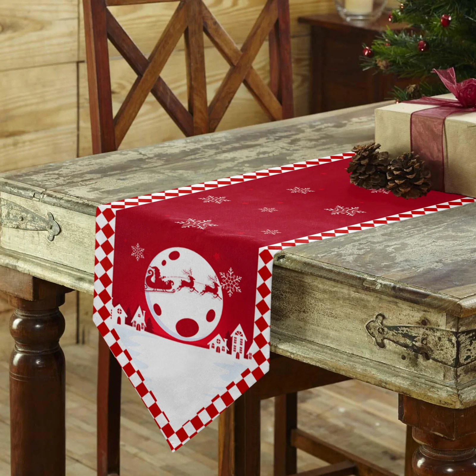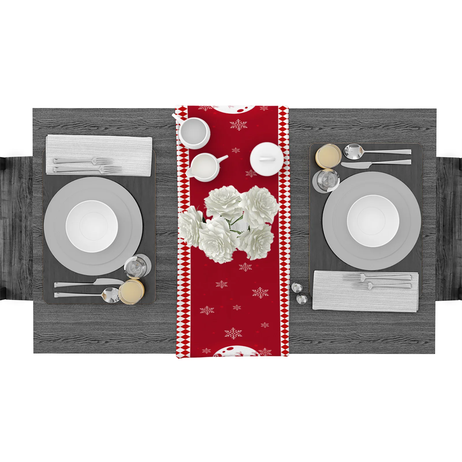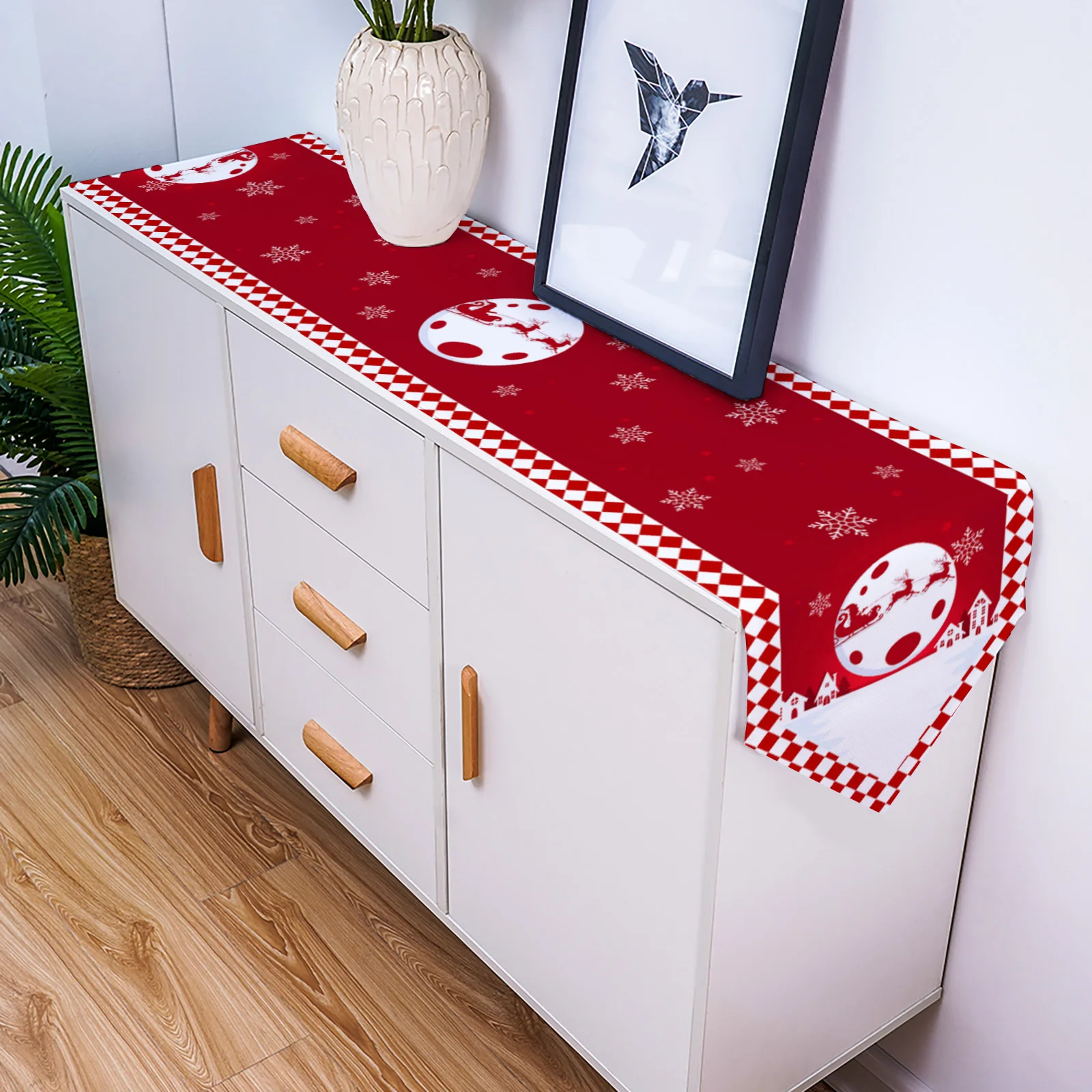 Рождественская красно-белая клетчатая настольная дорожка с Санта-Клаусом и снежинкой, настольное украшение для дома, рождественские новогодние украшения