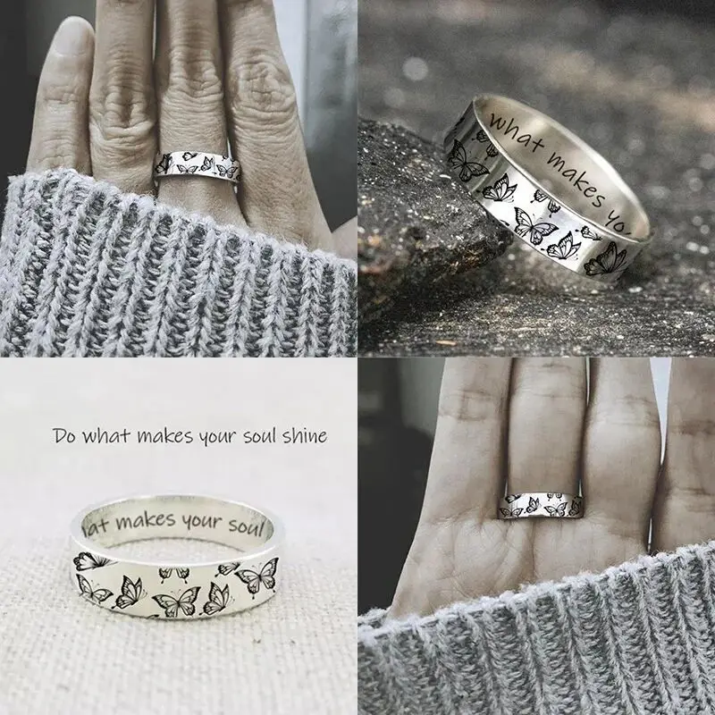 Женское кольцо в стиле ретро с гравировкой стрекозы, бабочкой и надписью, кольцо в стиле хип-хоп, готическое вечернее кольцо, женское ювелирное изделие, новый подарок
