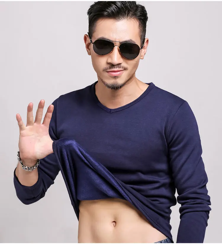 Зимние Топы, мужские футболки, термобелье, мужское термобелье, теплые кальсоны для мужчин с v-образным вырезом, толстая флисовая термо одежда для мужчин