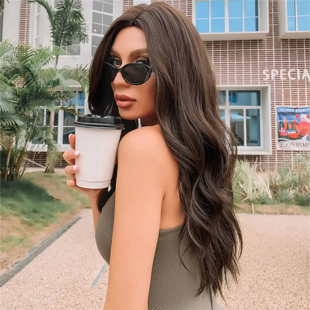 Длинные темно-коричневые волнистые синтетические парики для женщин, парики средней длины, термостойкие парики, женские волосы для ежедневного косплея Вечерние